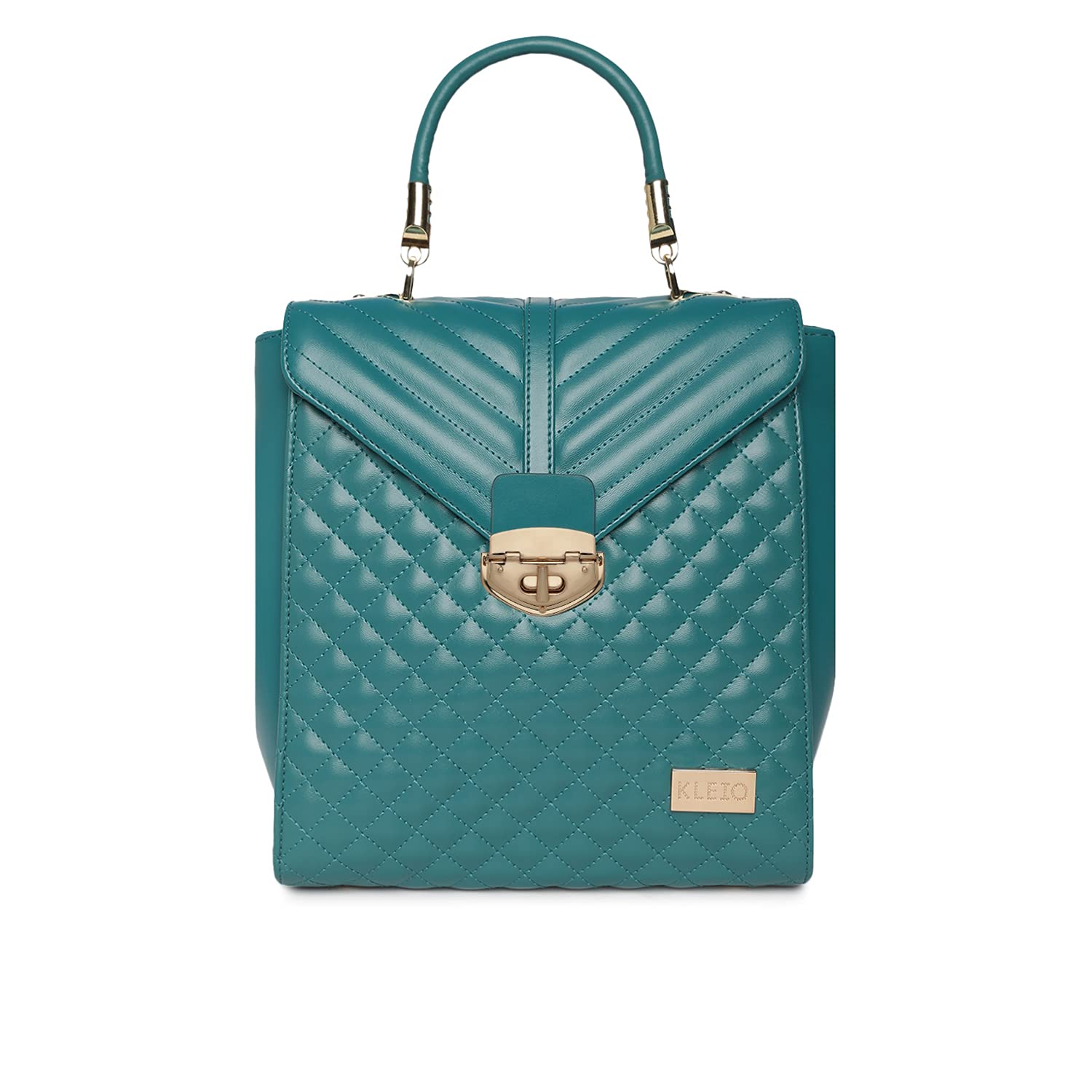 KLEIO Quilted Elegant Unisex Backpack (Olive Green) with Adjustable Shoulder Straps & Small Top Handle | Spacious Bag for Work with Flap and Button Closure & Small interior Pockets