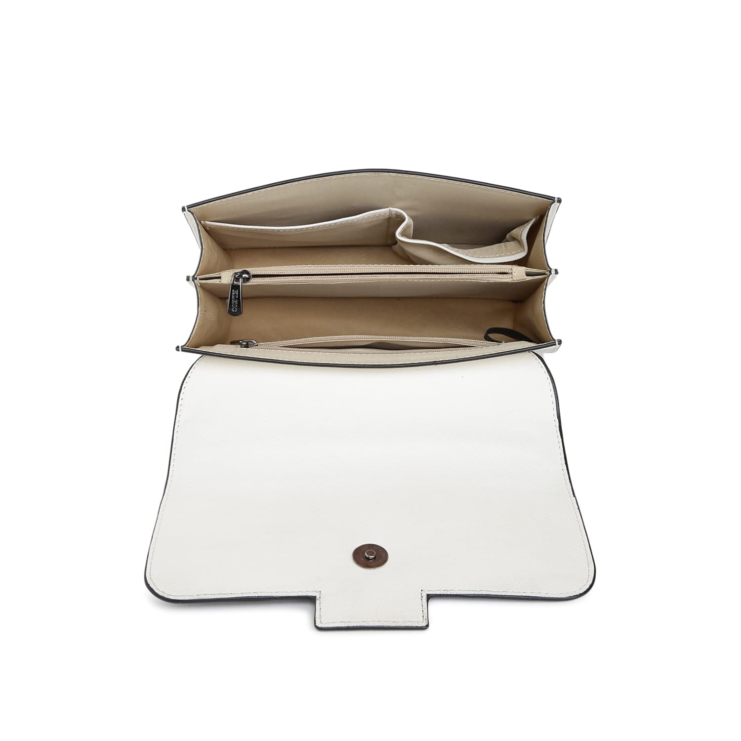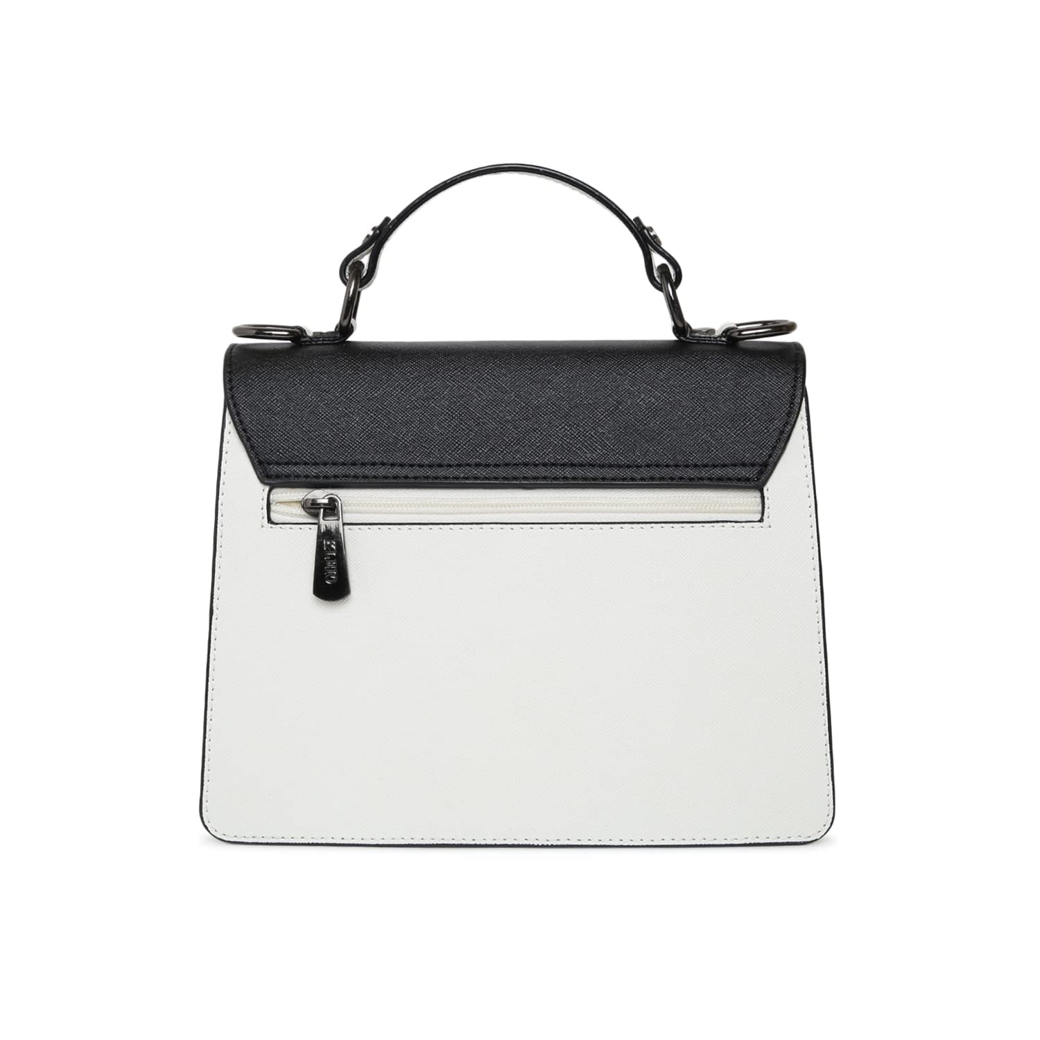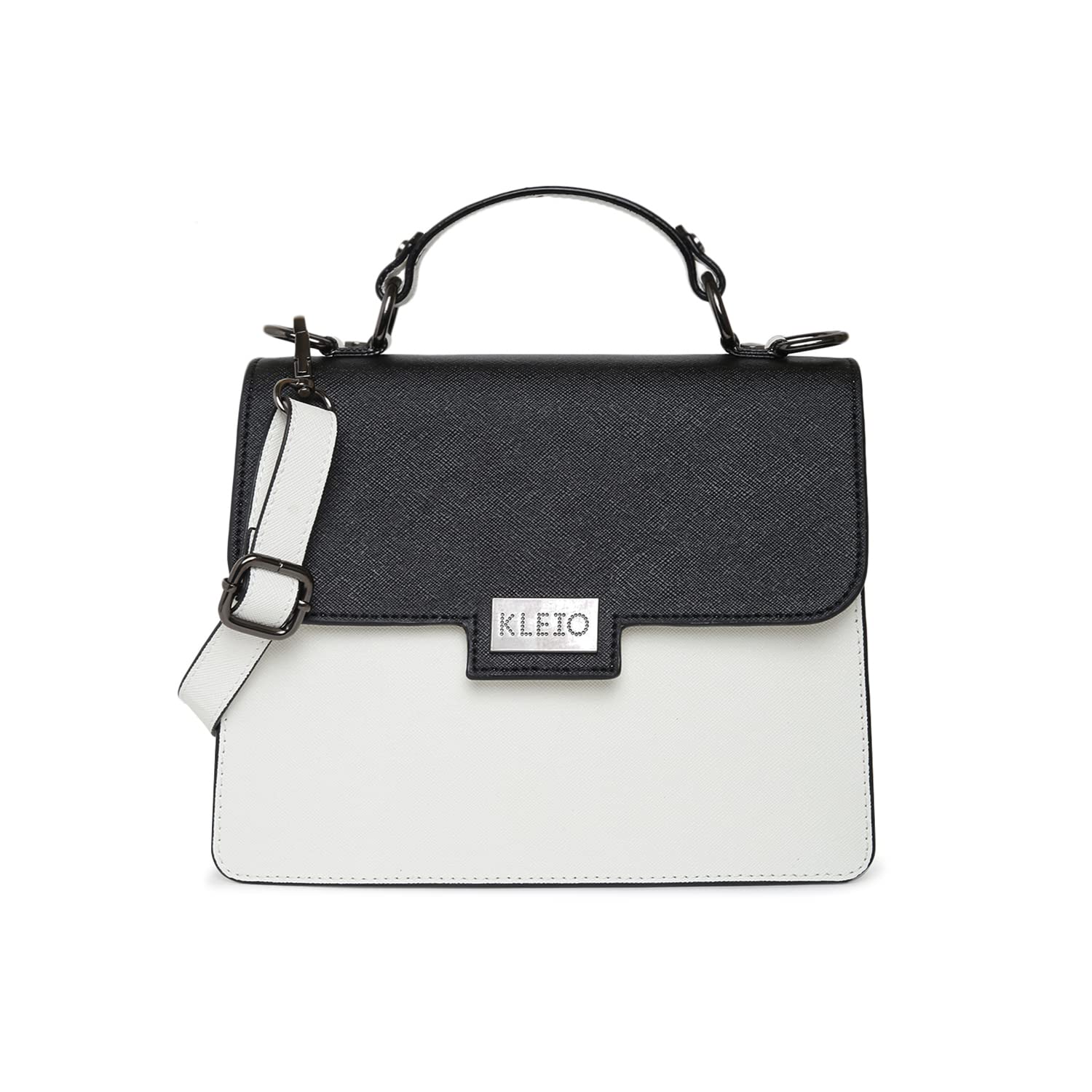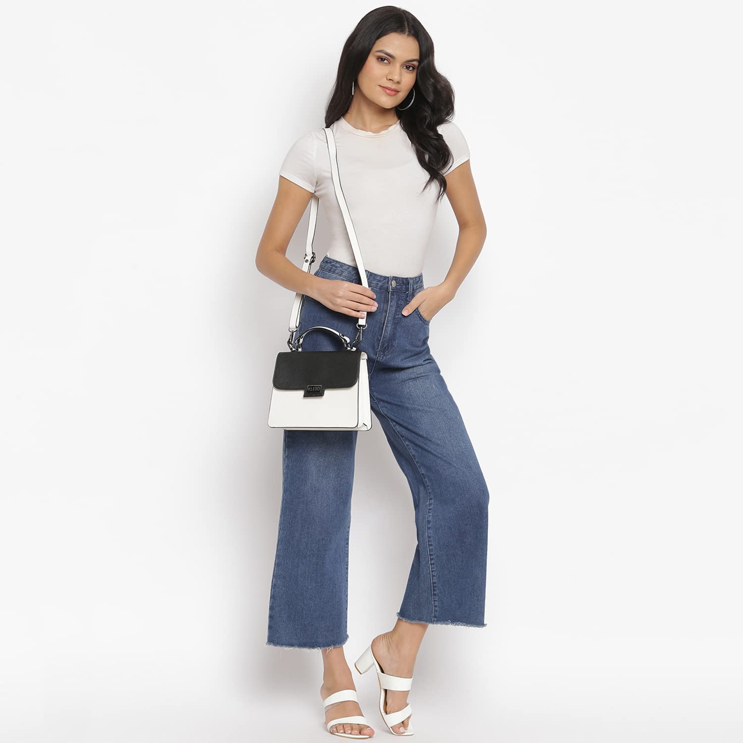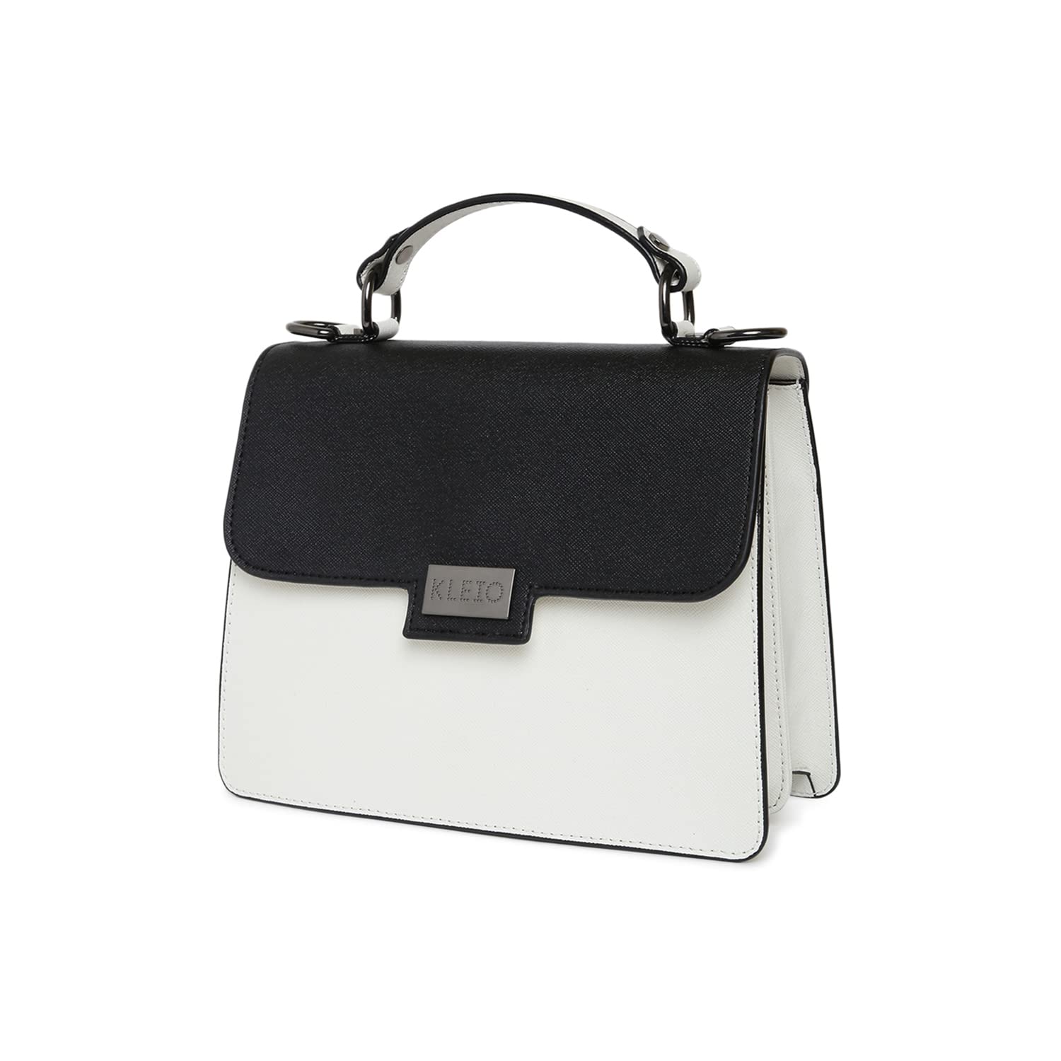 KLEIO Structured Leather Handbag (Black White) for Women with Top Handle & Polyester Lining | Crossbody Hand Bag for Girls with Adjustable & Detachable Sling Strap & Multiple Pockets