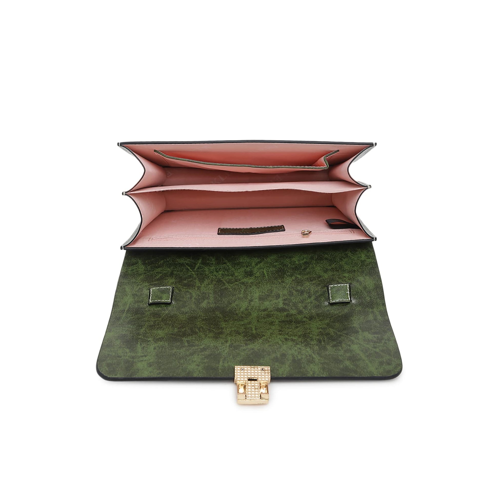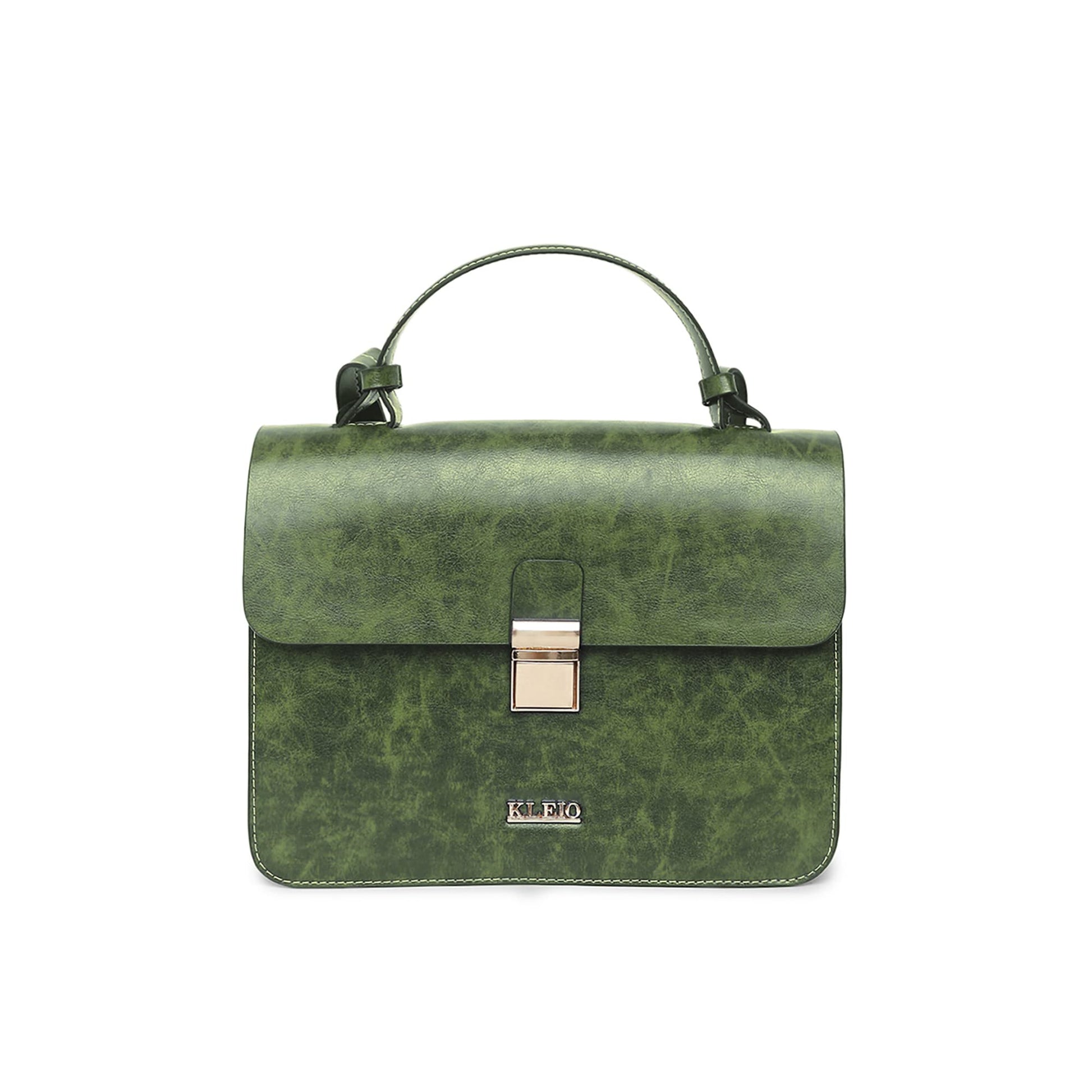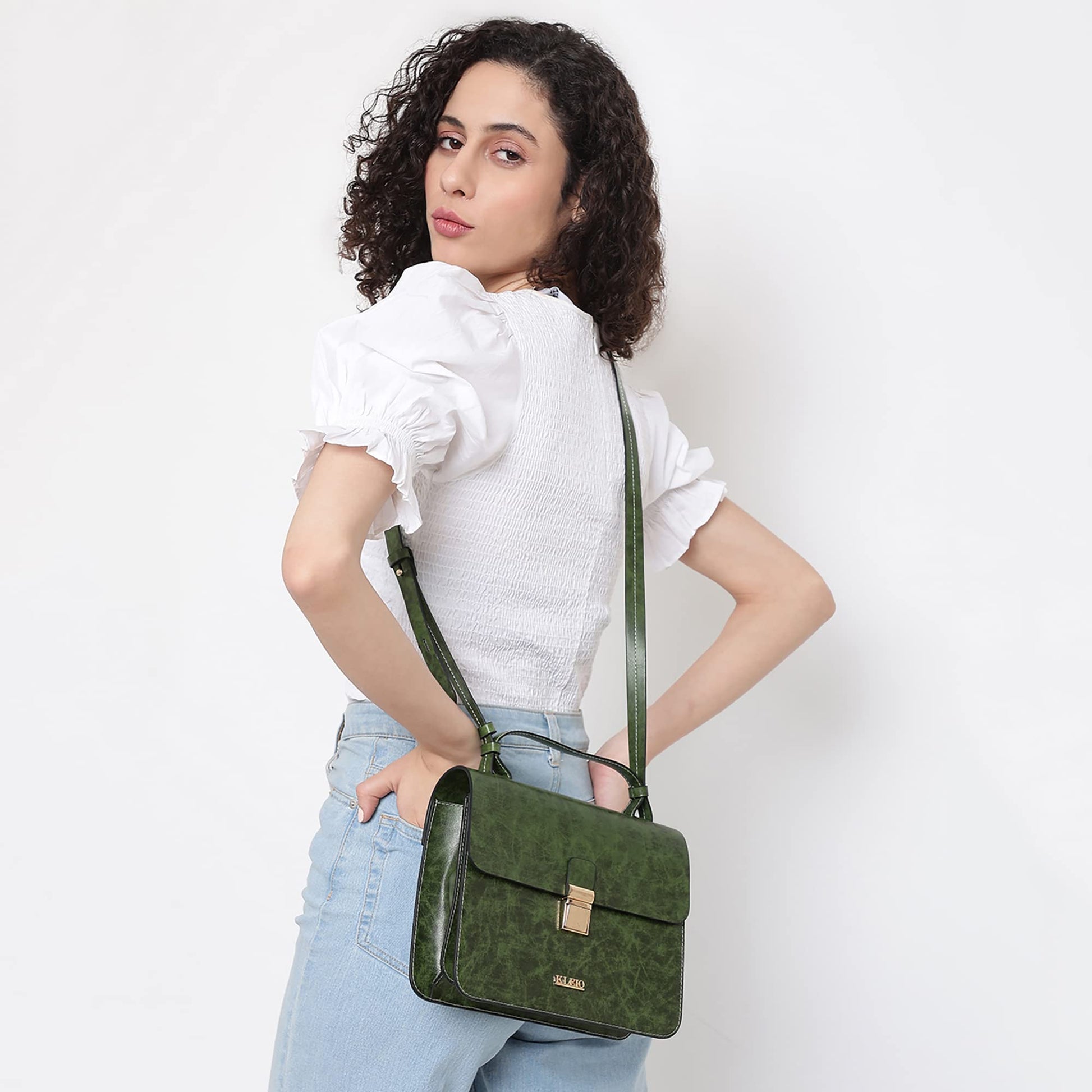 KLEIO Vegan Leather Spacious Sling Bag with Polyester Lining for Women (Olive Green) with Push Lock & Top Handle | Crossbody Bag for Girls Suitable for College, Travel & Everyday Use