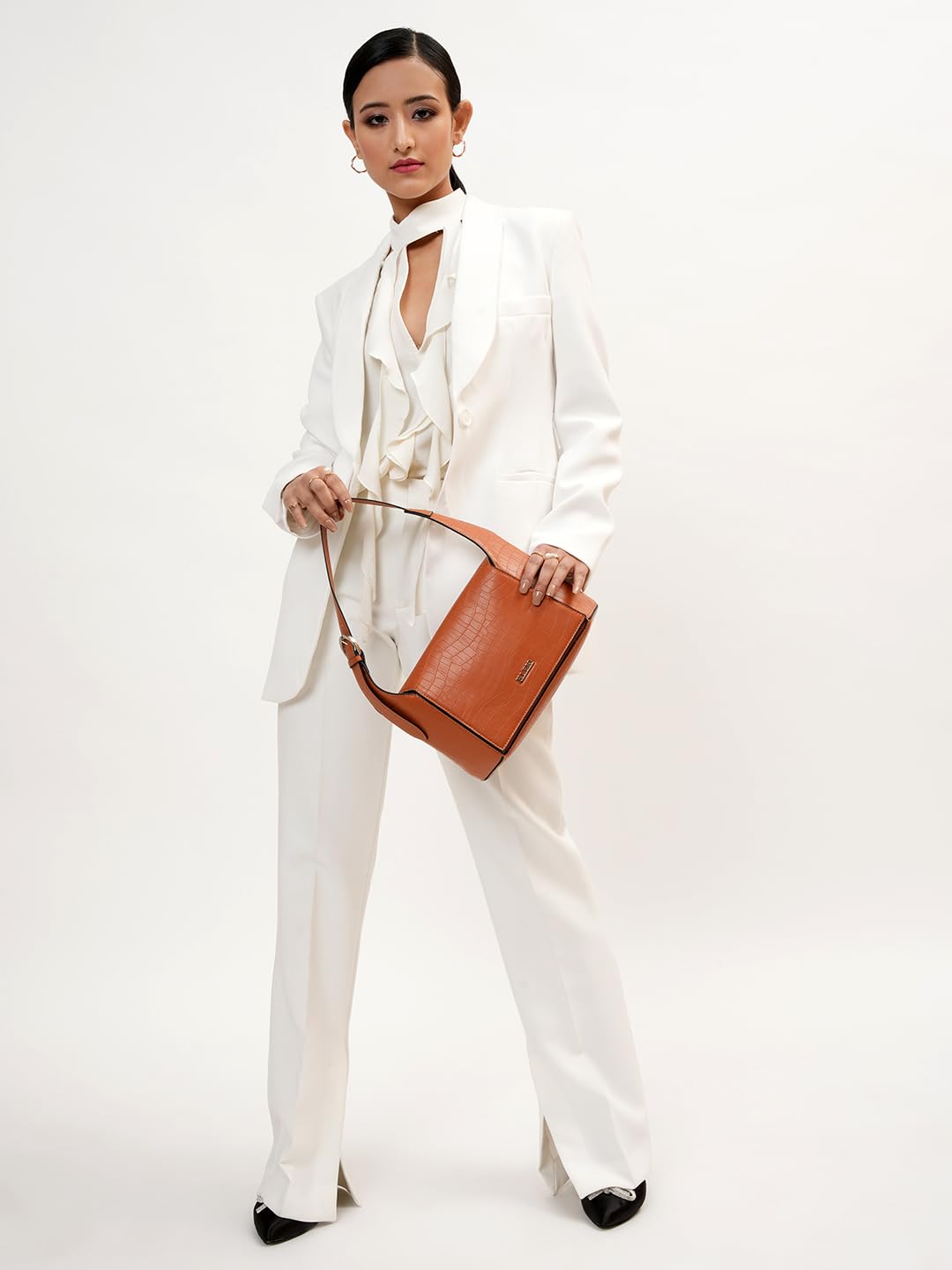 KLEIO Vegan Leather Trapeza Handbag for Women (Tan)