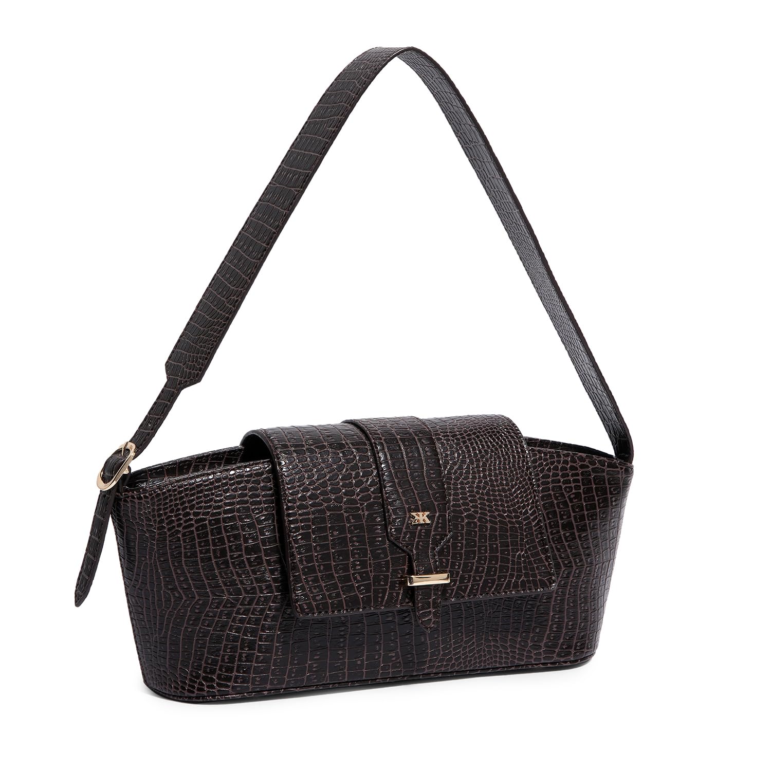 - Material & Design: The Vegan Luxe Shoulder Bag is a fashion statement with a conscience. Crafted from cruelty-free, croco-textured vegan leather, it is adorned with elegant gold hardware, the trendy design features a unique shoulder handle and a stylish front flap.