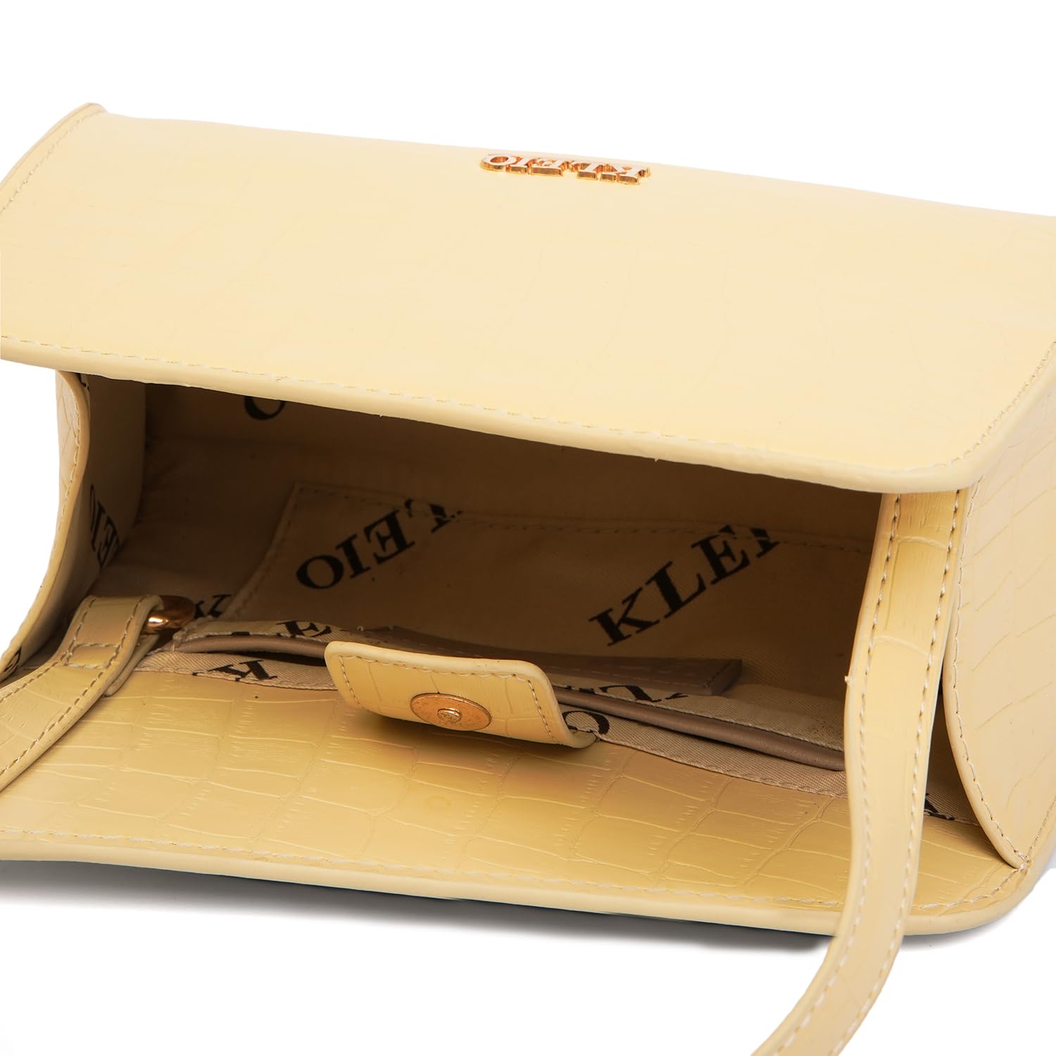 - MATERIAL & DESIGN: From the collection of KLEIO's mini bags for women, this trendy & stylish handheld hand bag is made using premium quality PU leather comes with a magnetic clasp closure, an adjustable & detachable sling strap.