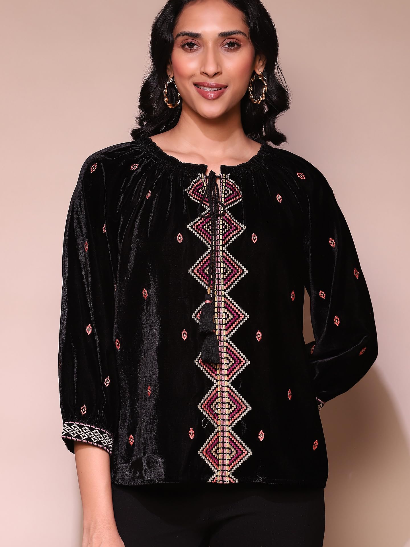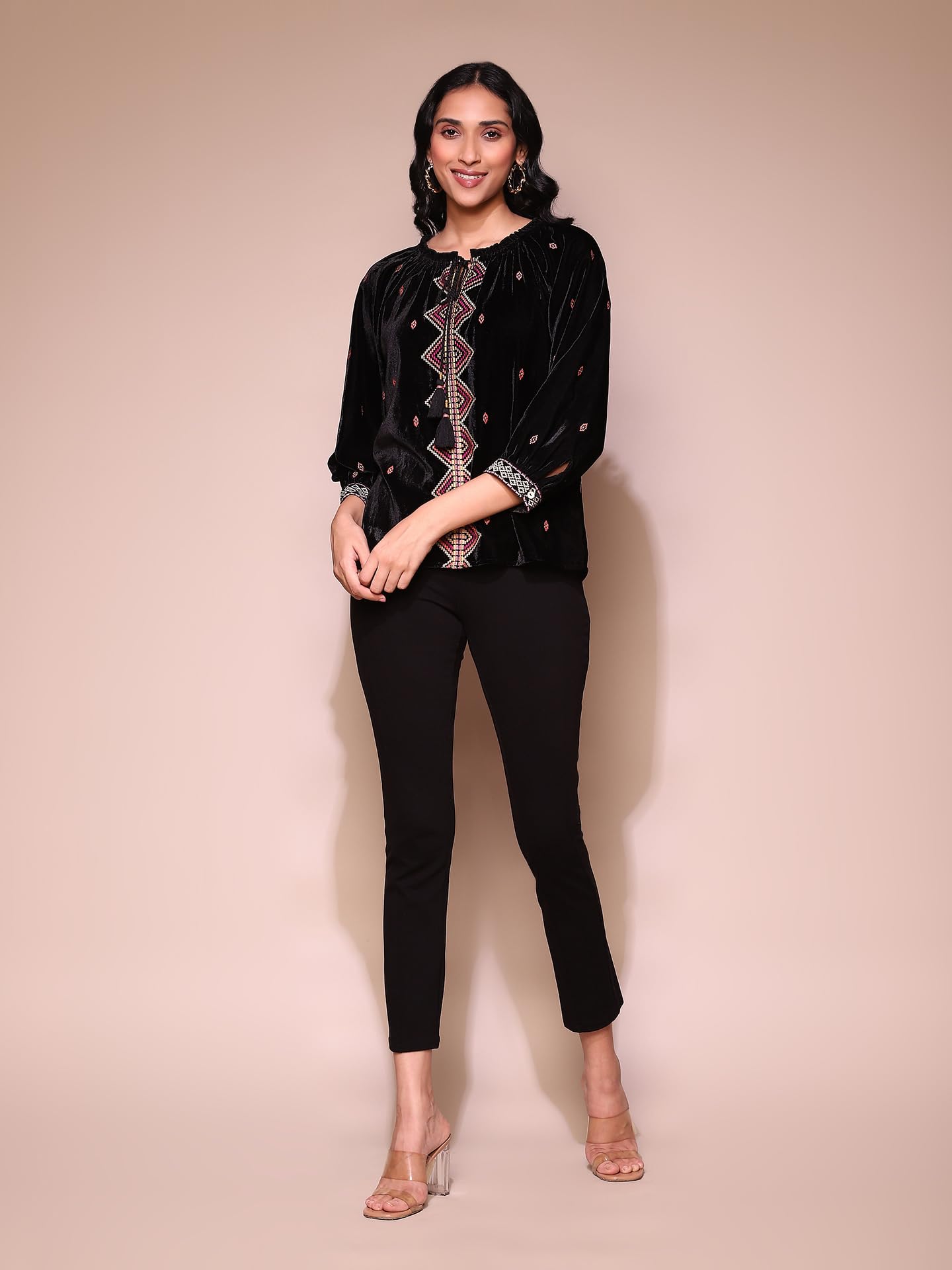 Label RITU KUMAR Black Embroidered Velvet Top
