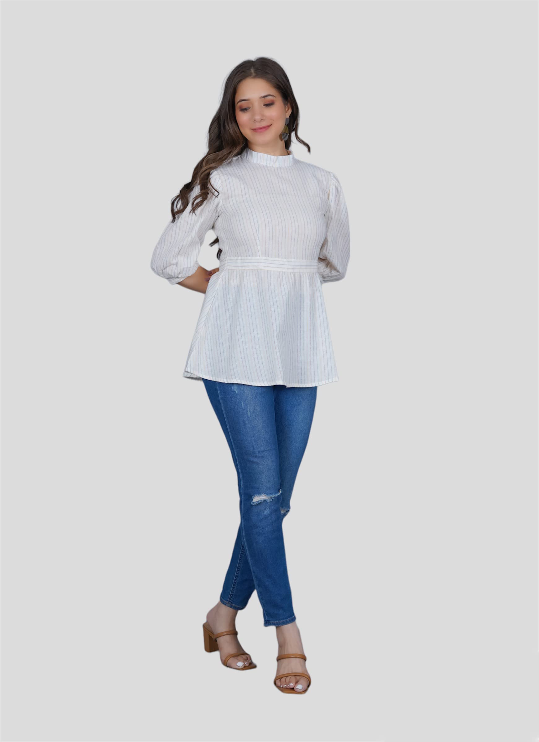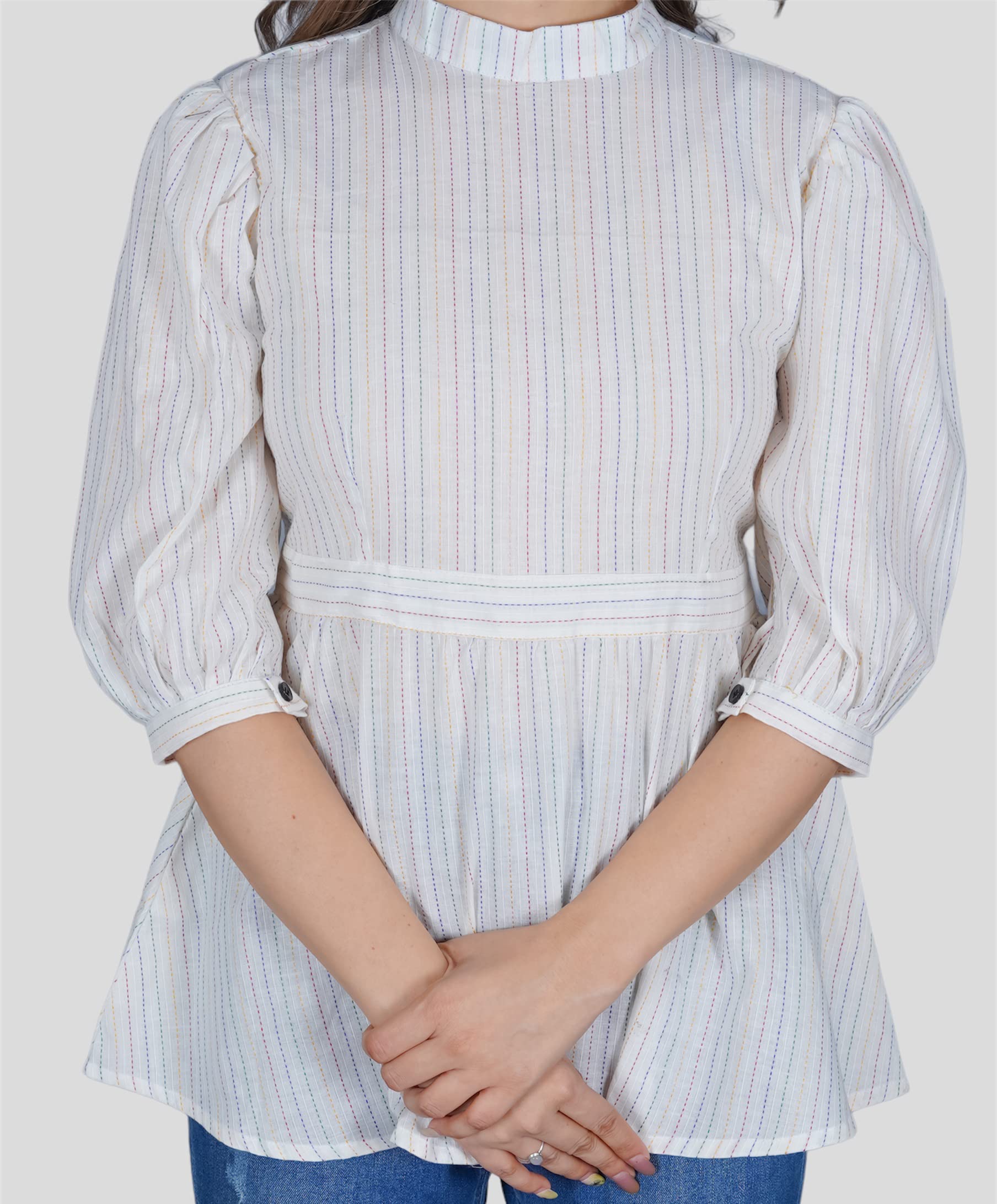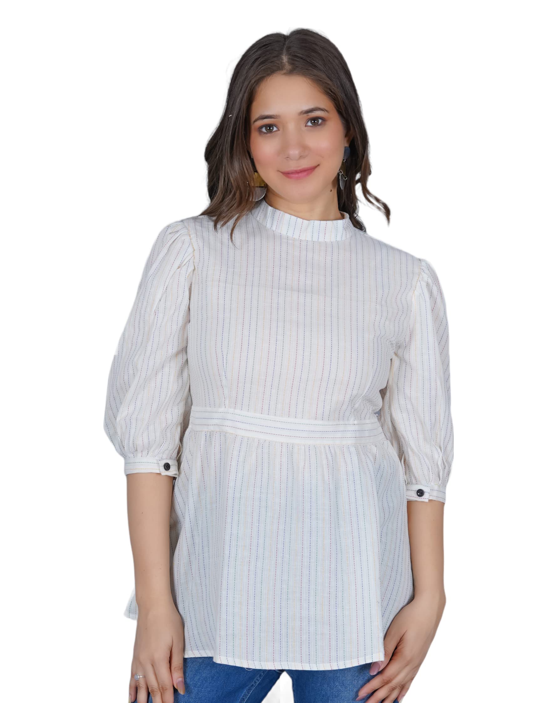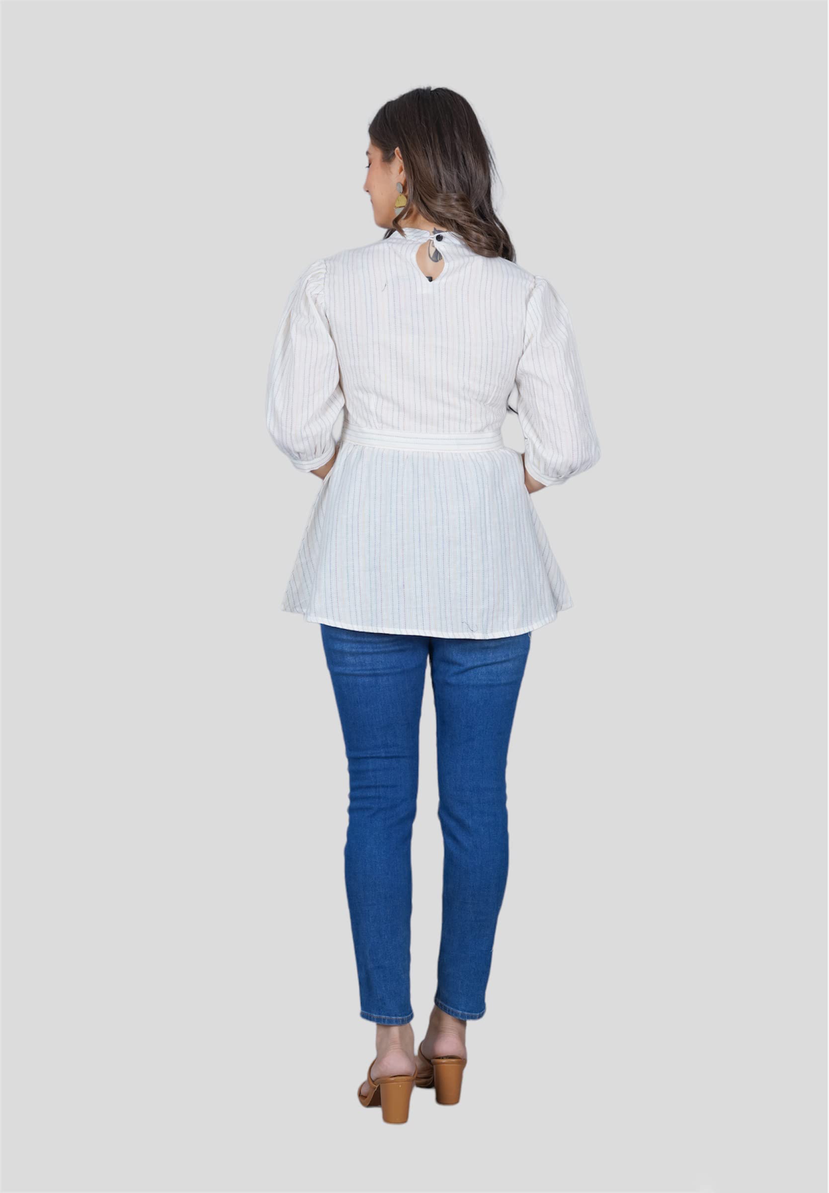LABEL SHIPRA BOHARA Women Fancy Tops for Women/Black Kantha Work Summer top (Small, White)