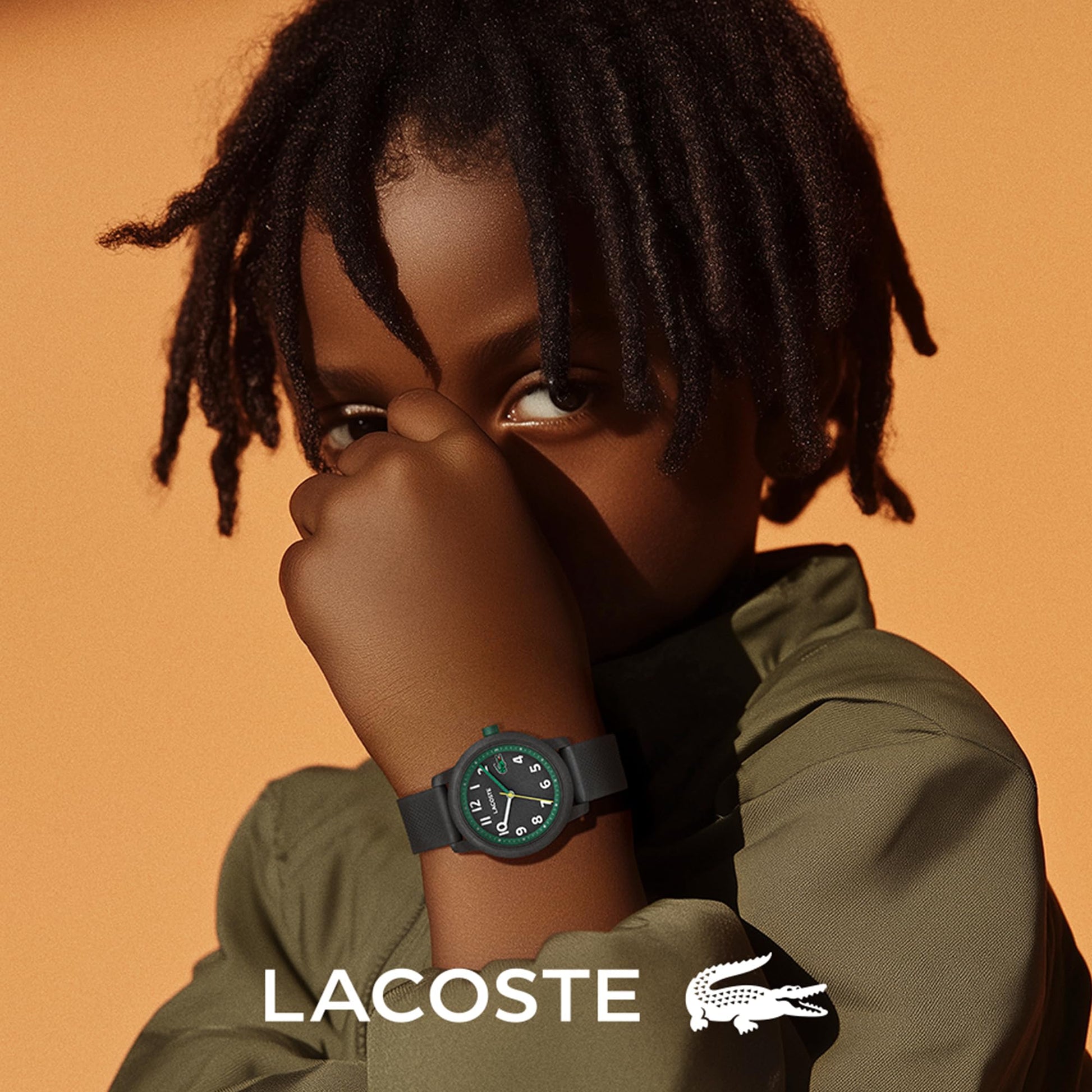 - Elevating the iconic bestseller, the Lacoste.12.12 KIDS now reaches new heights with a premium quartz movement. Crafted with an aluminum case and petit piqué embossed leather, it blends style and performance seamlessly. A unique crocodile-shaped opening on the dial offers a glimpse of the movement within, adding a bold twist.
