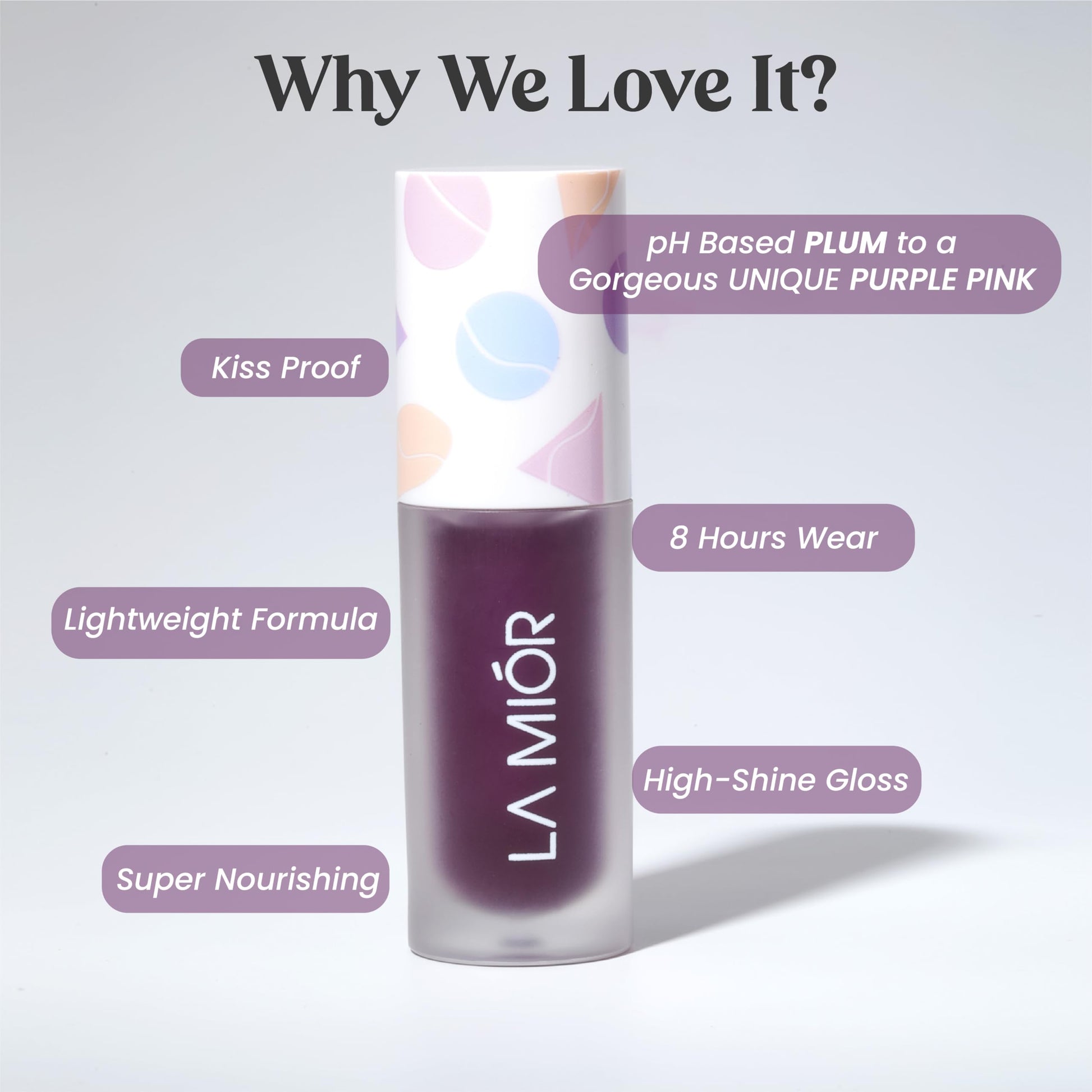 LAMIOR pH Adaptive Lip Tint | Colour Changing Lip Oil Stain | Long Lasting Lip Tint | Non Sticky & High Shine | Nourishing Oils like Jojoba & Almond | Heals Chapped & Dry Lips | Shade - Jamun Ball, 5ml
