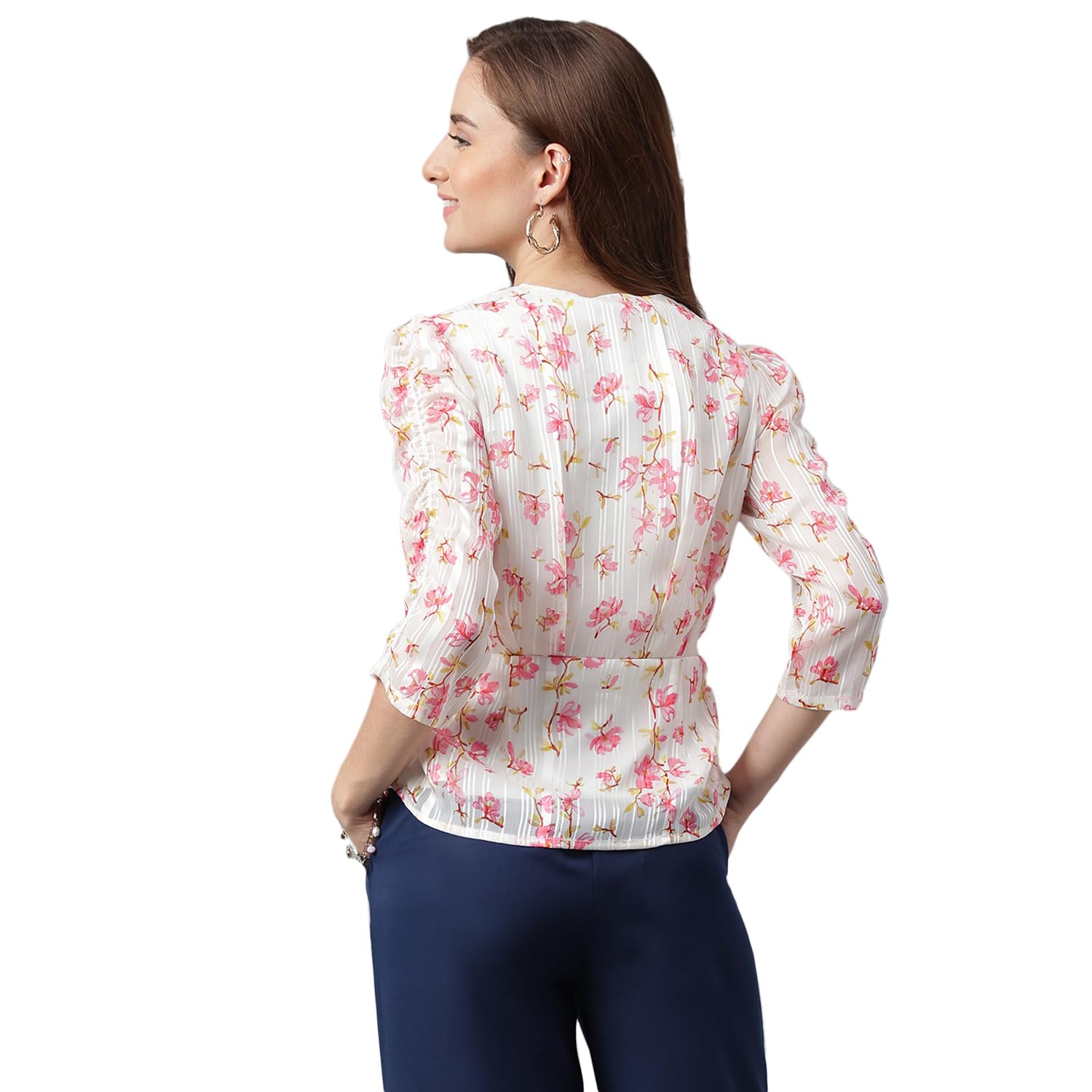 Latin Quarters Casual Puff Sleeves Floral Print Women Pink Top_M
