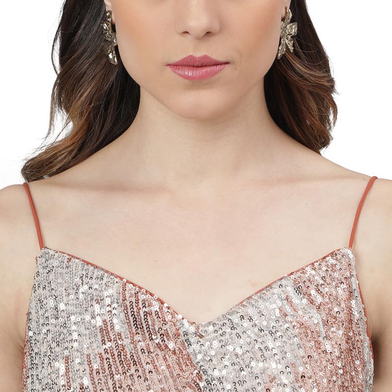 - Material-: Polyester || Sleeves type-: Sleeveless || Color-: Copper || Pattern-: Embellished