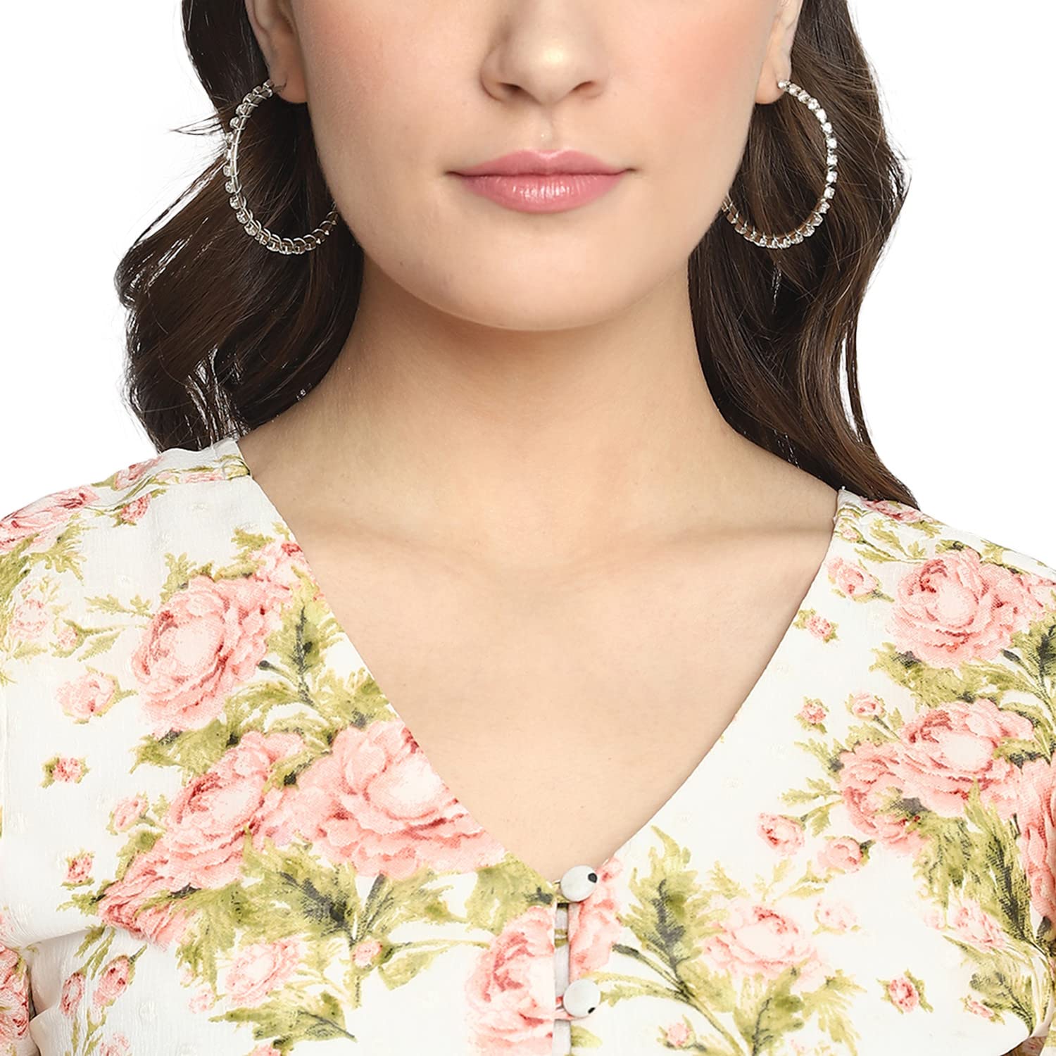 - BENEFIT - Are you a fan of Floral too? Then this beautiful and Sustainable Dress meant for you detailing in contrasting Red all over the Half Sleeve hemlines is what you need for the Women's.