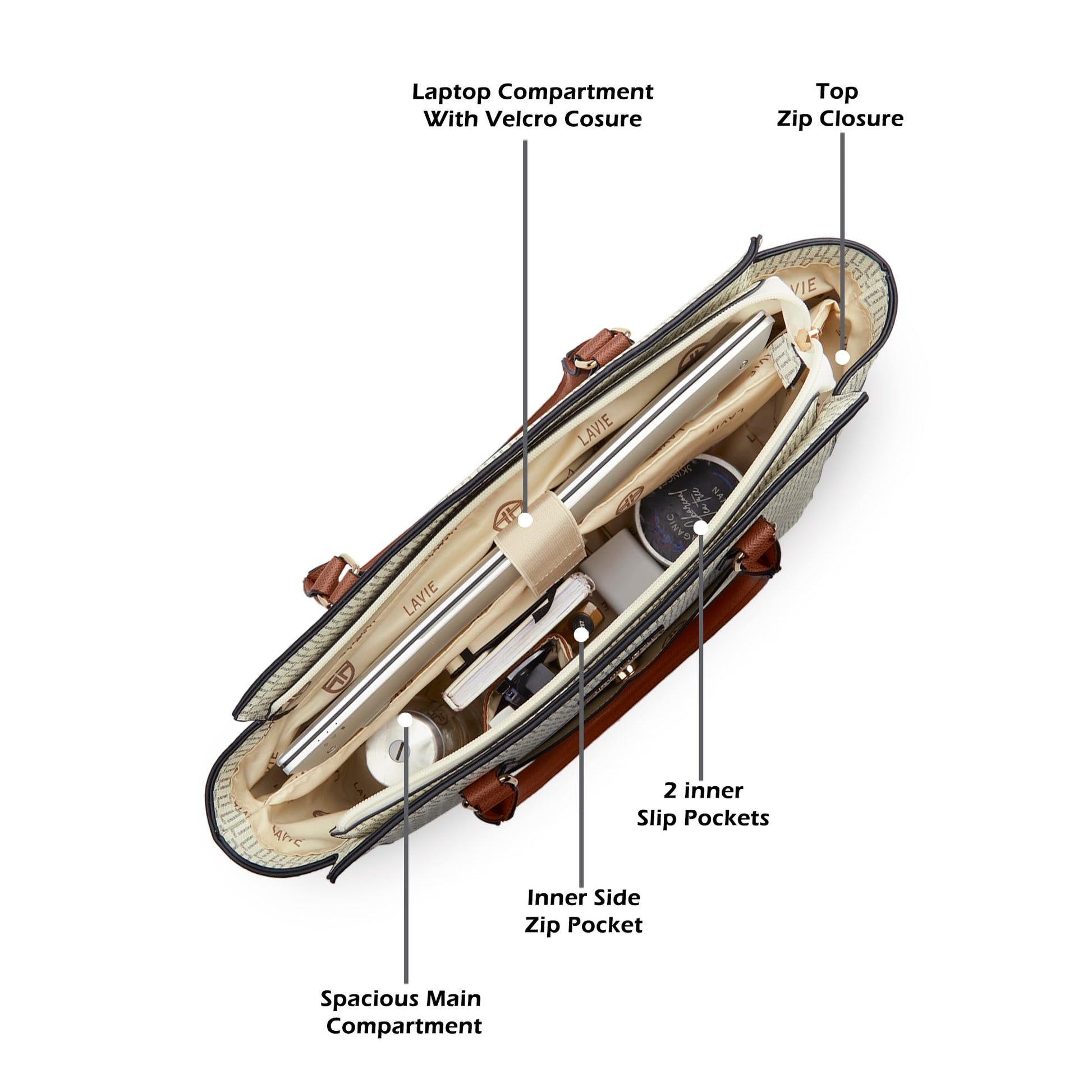 Lavie Luxe Women's Mono Kelly Monogram Print Tote Laptop Handbag for Women | Fits Upto 15 Inch Laptop | Tote Laptop Bag for Work | Ladies purse | Stylish Shoulder Bag | Gift For Women