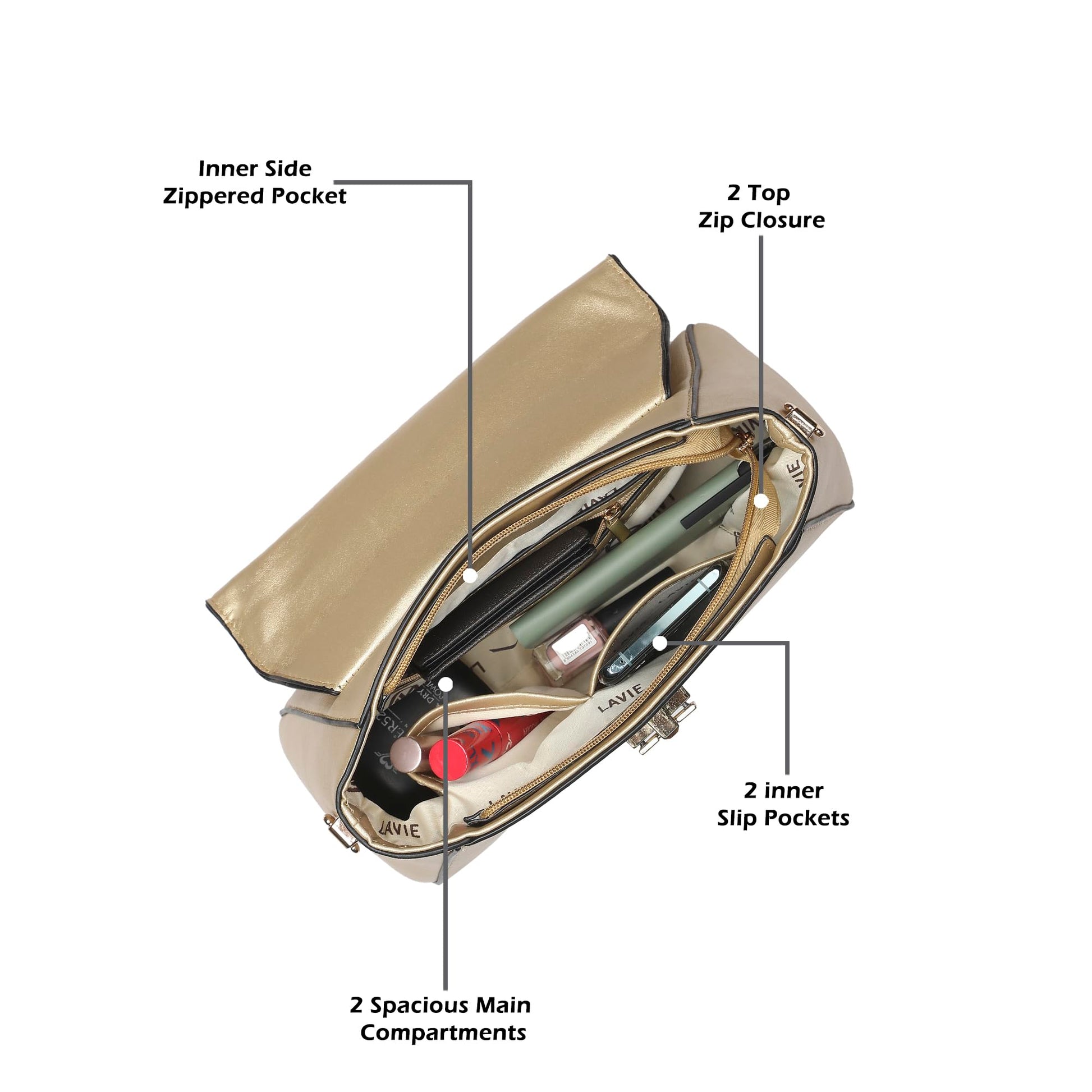 Lavie Luxe Women's Pine Flap SmallSolid Colourblock Satchel Handbag for Women | Satchel Bag for Work | Ladies purse | Stylish Shoulder Bag | Ladies Gift
