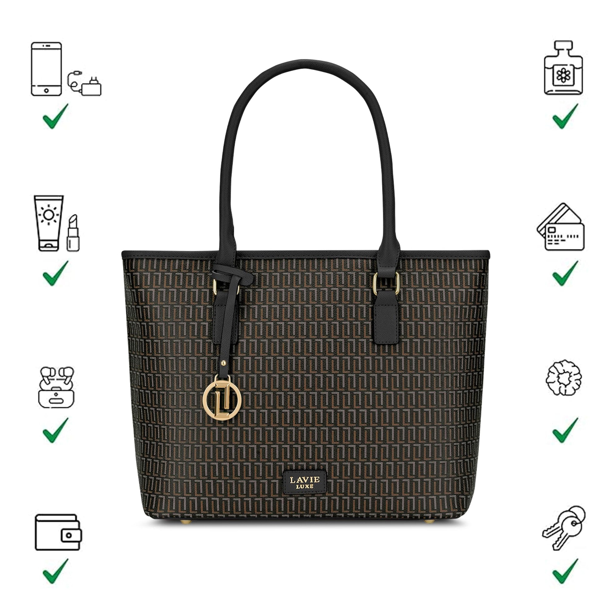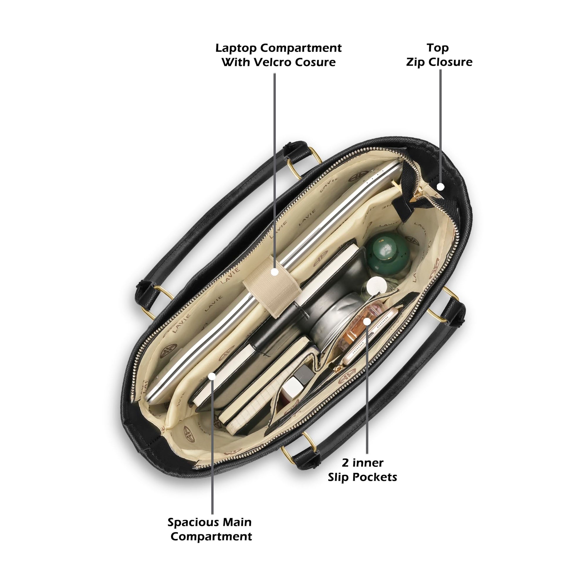Lavie Luxe Women's Sherry25 Pro Monogram Laptop Handbag for Women | Fits Upto 15 Inch Laptop | Laptop Bag for Work | Ladies purse | Stylish Shoulder Bag | Gift For Women