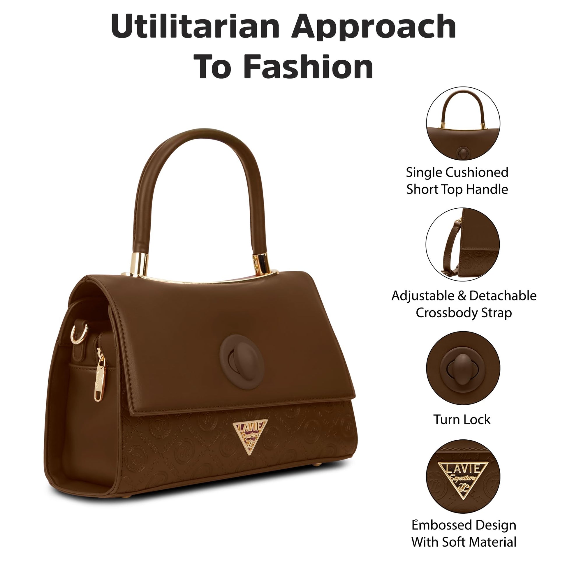 - Enhance your ensemble with the exquisite satchel from Lavie Signature deboss collection, adding the perfect finishing touch to your look. With its thoughtfully designed compartments, this bag ensures your essentials are carried in organized elegance.