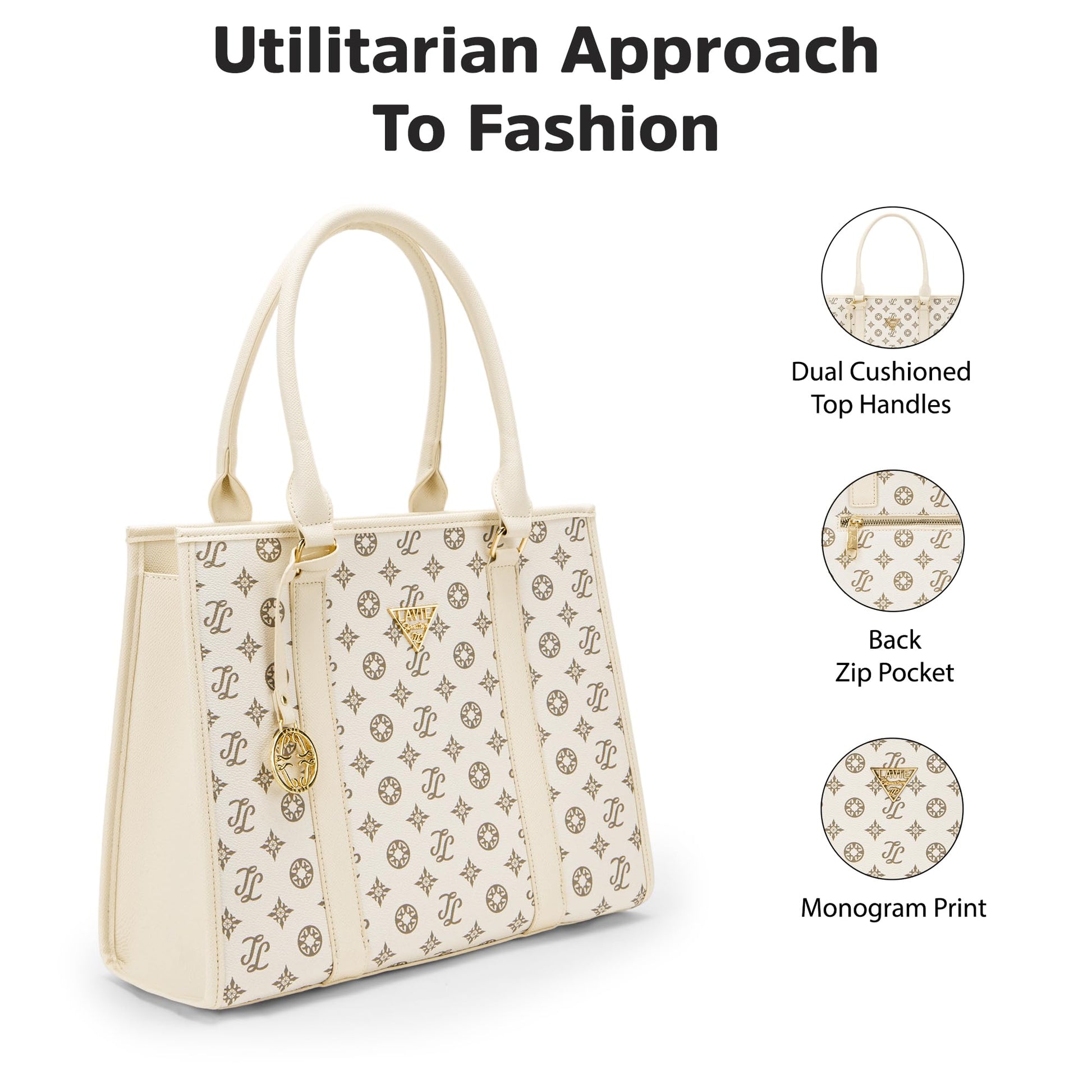- With its elegant design, this Satchel by Lavie Signature luxe serves as an ideal work bag, boasting a monogram-printed premium texture for a sophisticated touch.