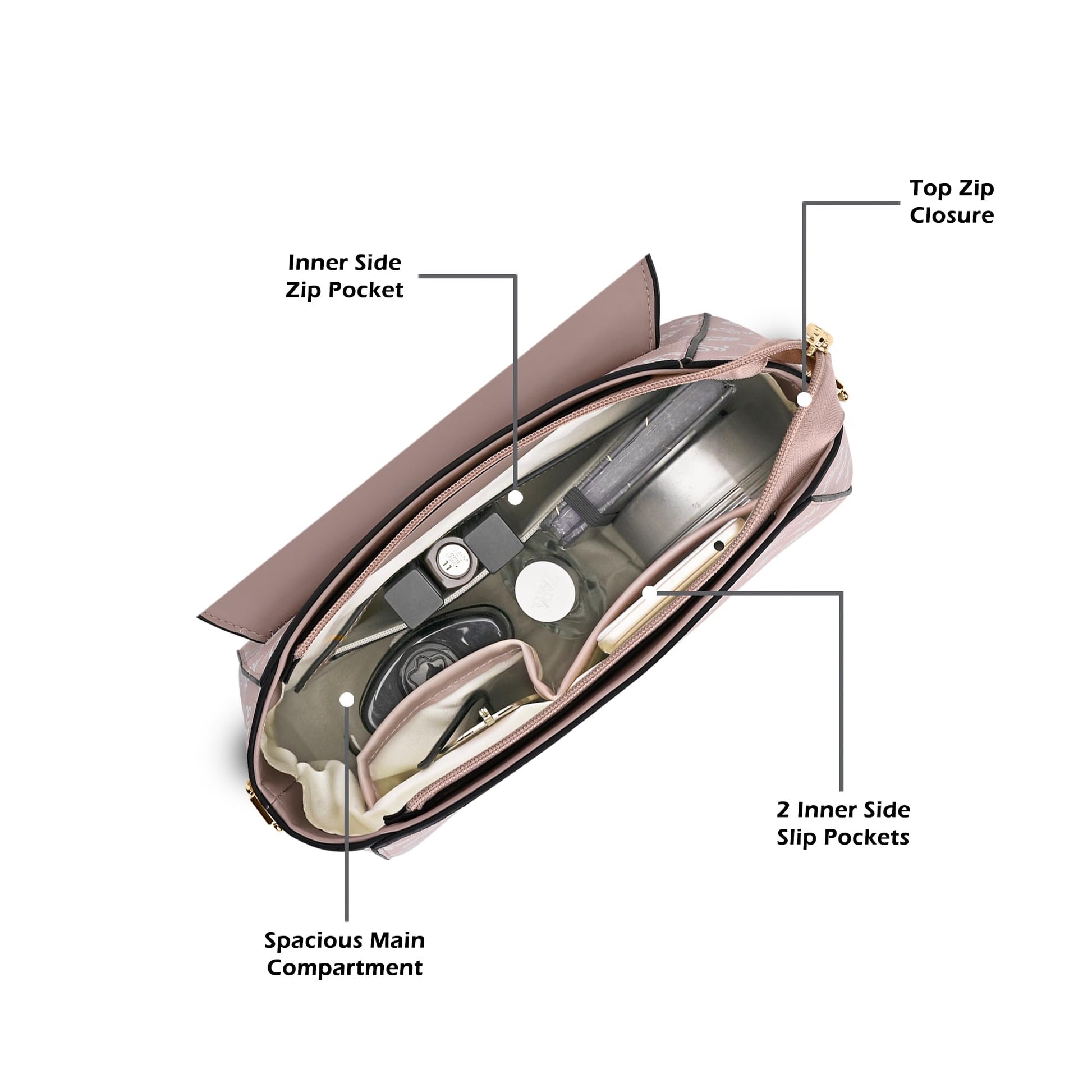 - Mono jackson hand bag has a top zip closure for safety and security. The interior has a main spacious compartment with 2 slip pockets, 1 inner zip pocket and 1 external zip pocket - that will give you plenty of storage space for keeping phone, keys, wallet, and most importantly - mask and sanitiser!