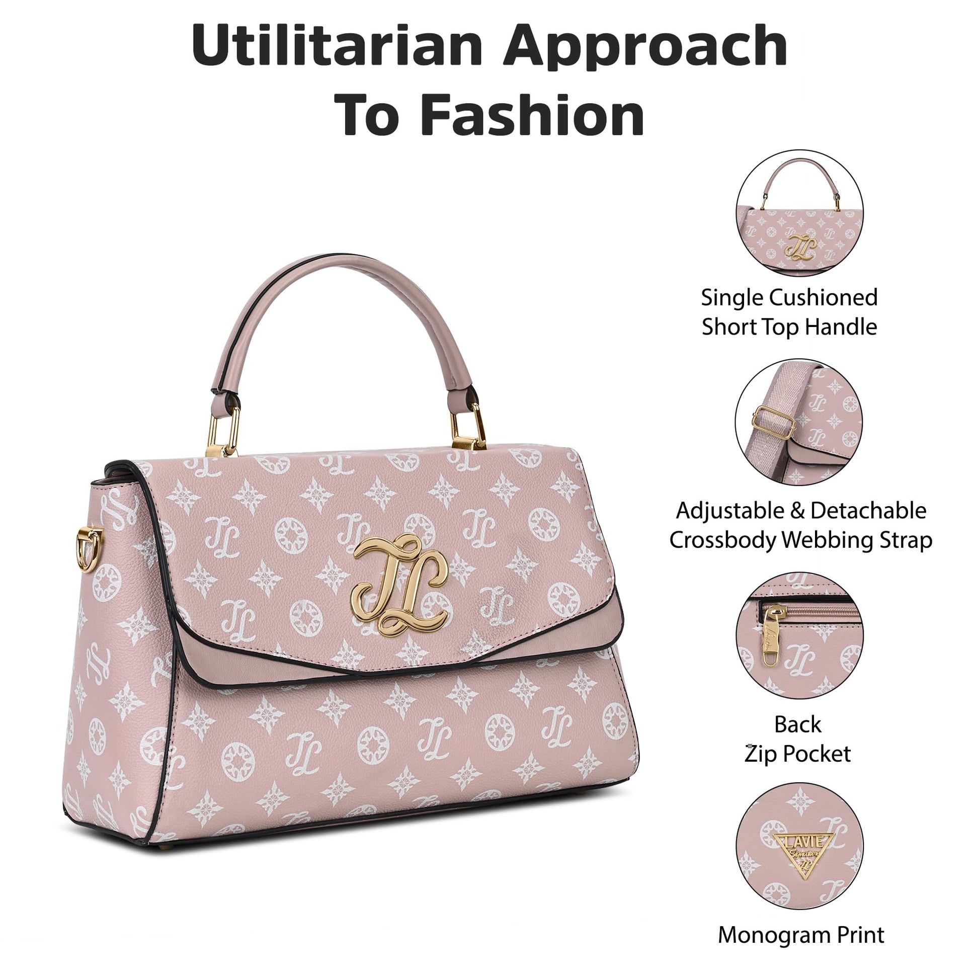 Lavie Signature Women's Mono Jackson Flap Satchel Handbag for Women | Satchel Bag for Work | Ladies purse | Stylish Shoulder Bag | Gift For Women
