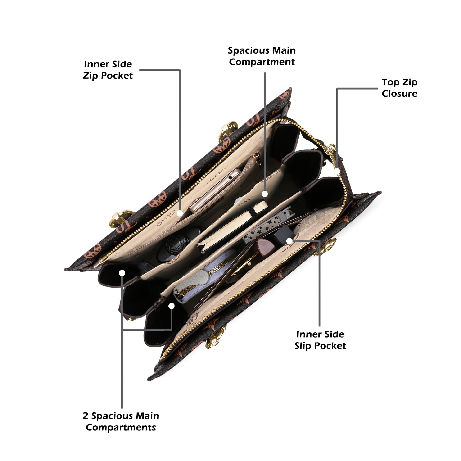 Lavie Signature Women's Mono Yuma 3 Compartment Satchel Bag | Satchel Handbag for Work | Ladies purse | Stylish Shoulder Bag | Gift for Women