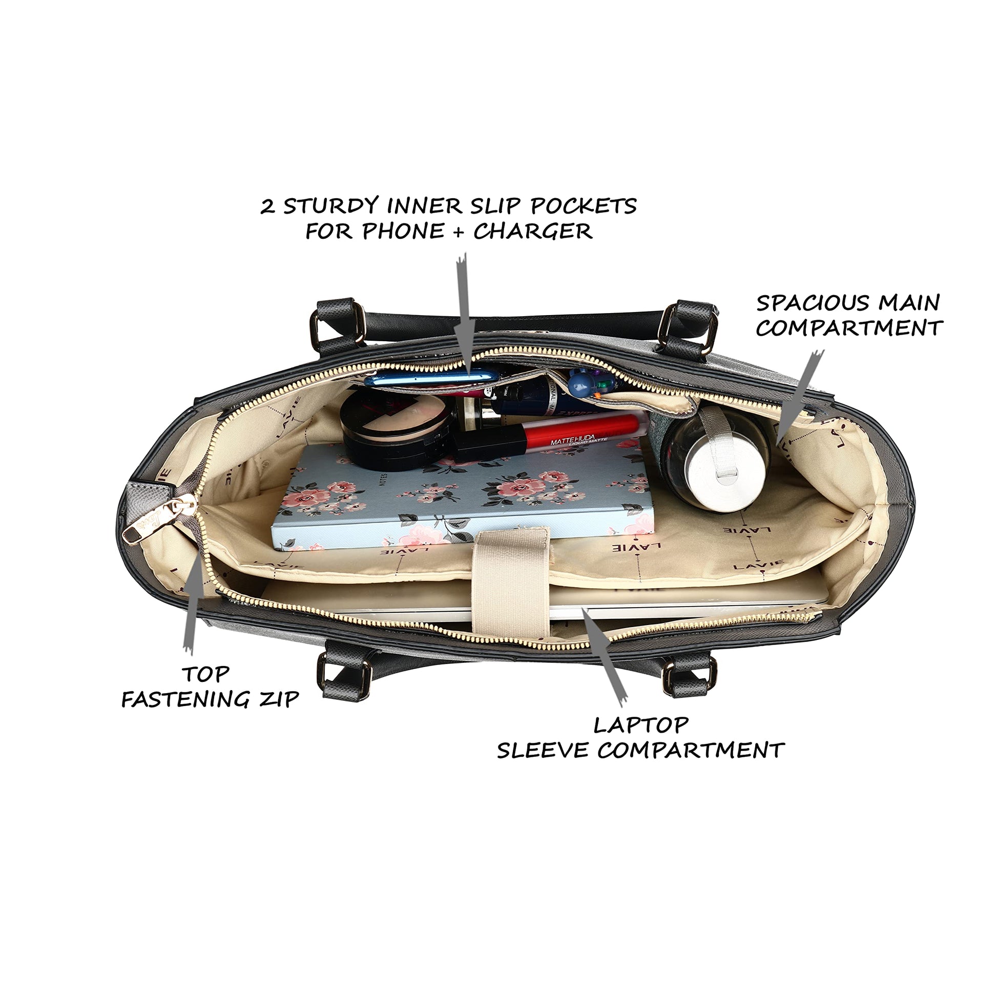 - Functional and trendy, this handbag from Lavie will carry all your essentials for your day.