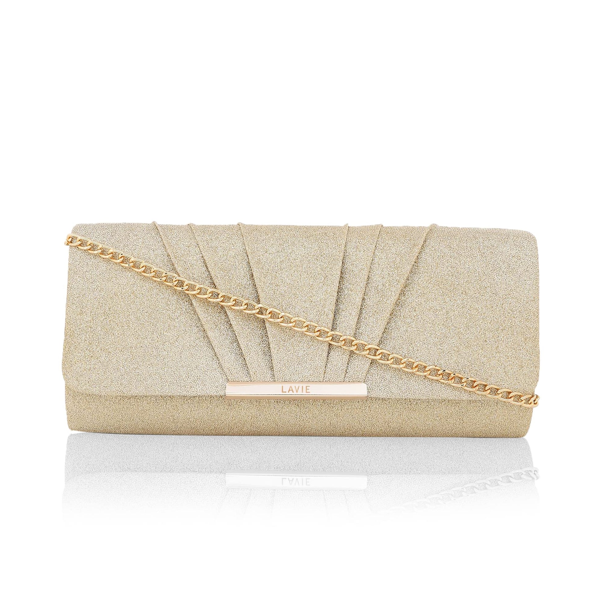 - This stylish foldover framed clutch by Lavie is made with high end Glitter fabric. It has a flap which can be closed with a durable magnet and two zippered pocket to keep your valuable items safe