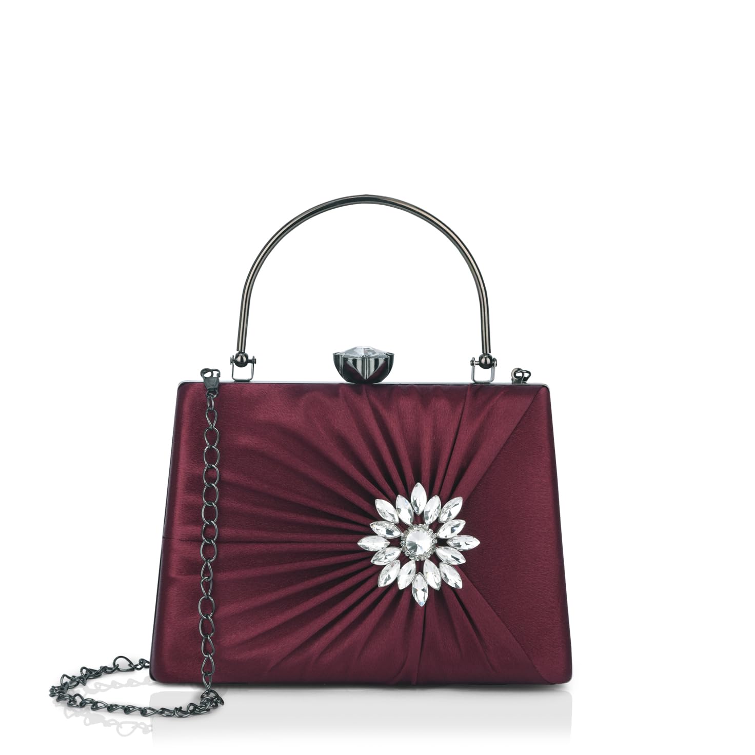 Details: Ivy has less drastic pleats and the diamond buckle is placed off centre to create a nice edge to the design. The satin fabric and buckle work together to make the bag appear elgant and fashionable for grand functions and festivals.
