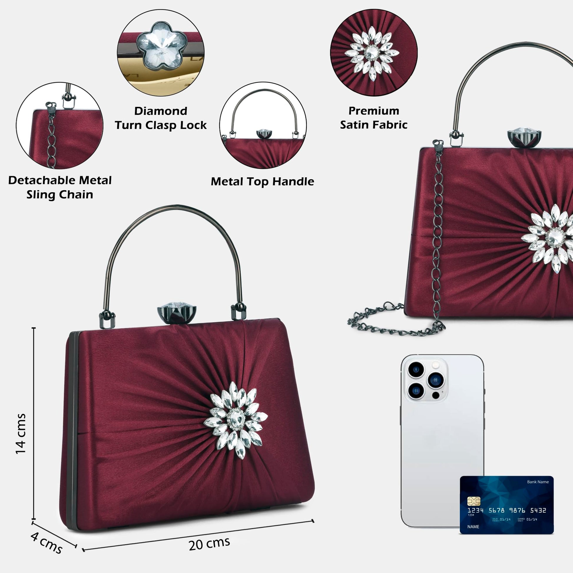 - Ideal Shape and Size: With dimensions of 20L X 3W X 12H cm, this clutch handbag offers the perfect balance of style and practicality, allowing you to add last-minute belongings while fitting a lot during important functions.