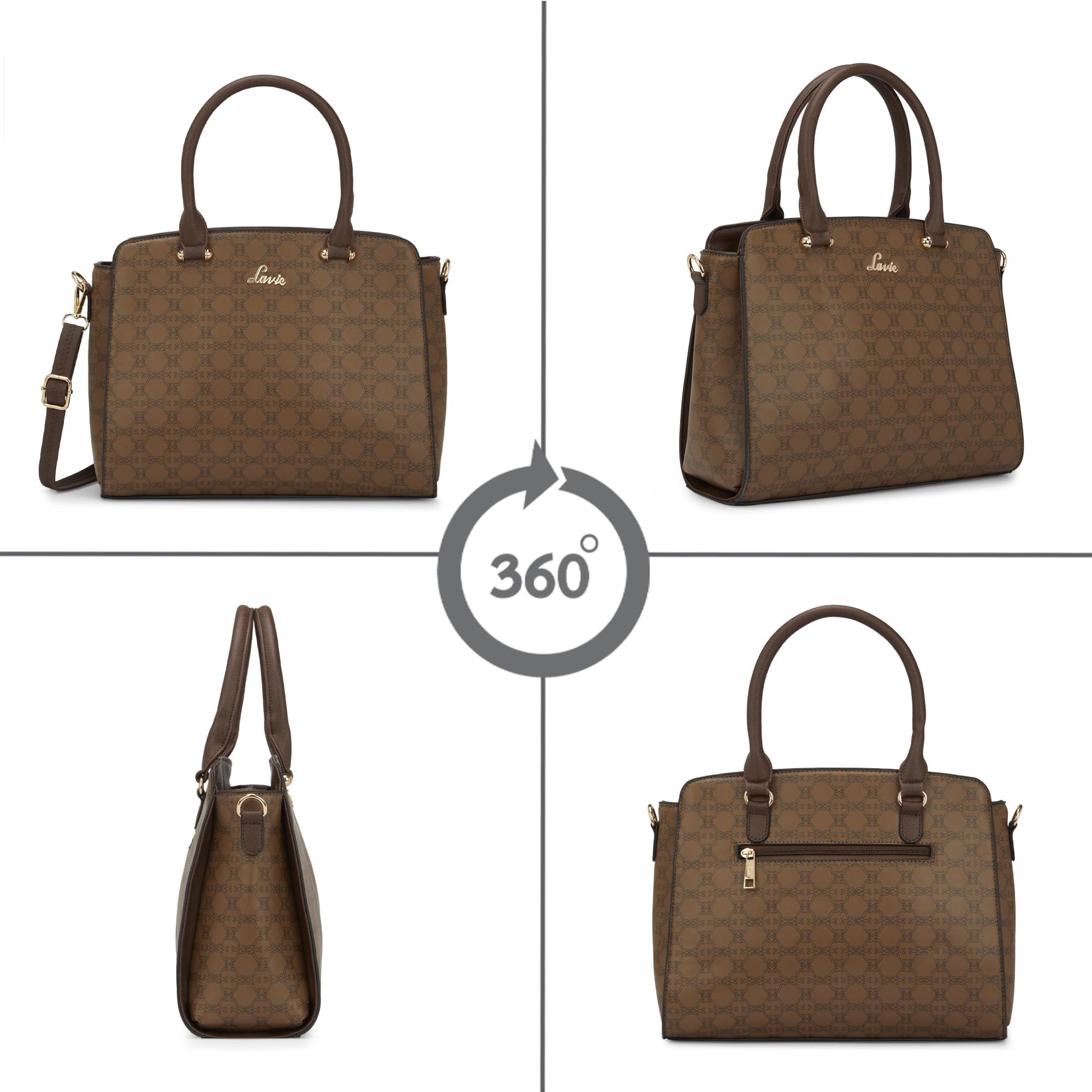 Set trends by adding a touch of monogram print to it with this handbag, crafted by Lavie. Match it with an pencil skirt and shirt with high heels of your choice to get a professional look at office.