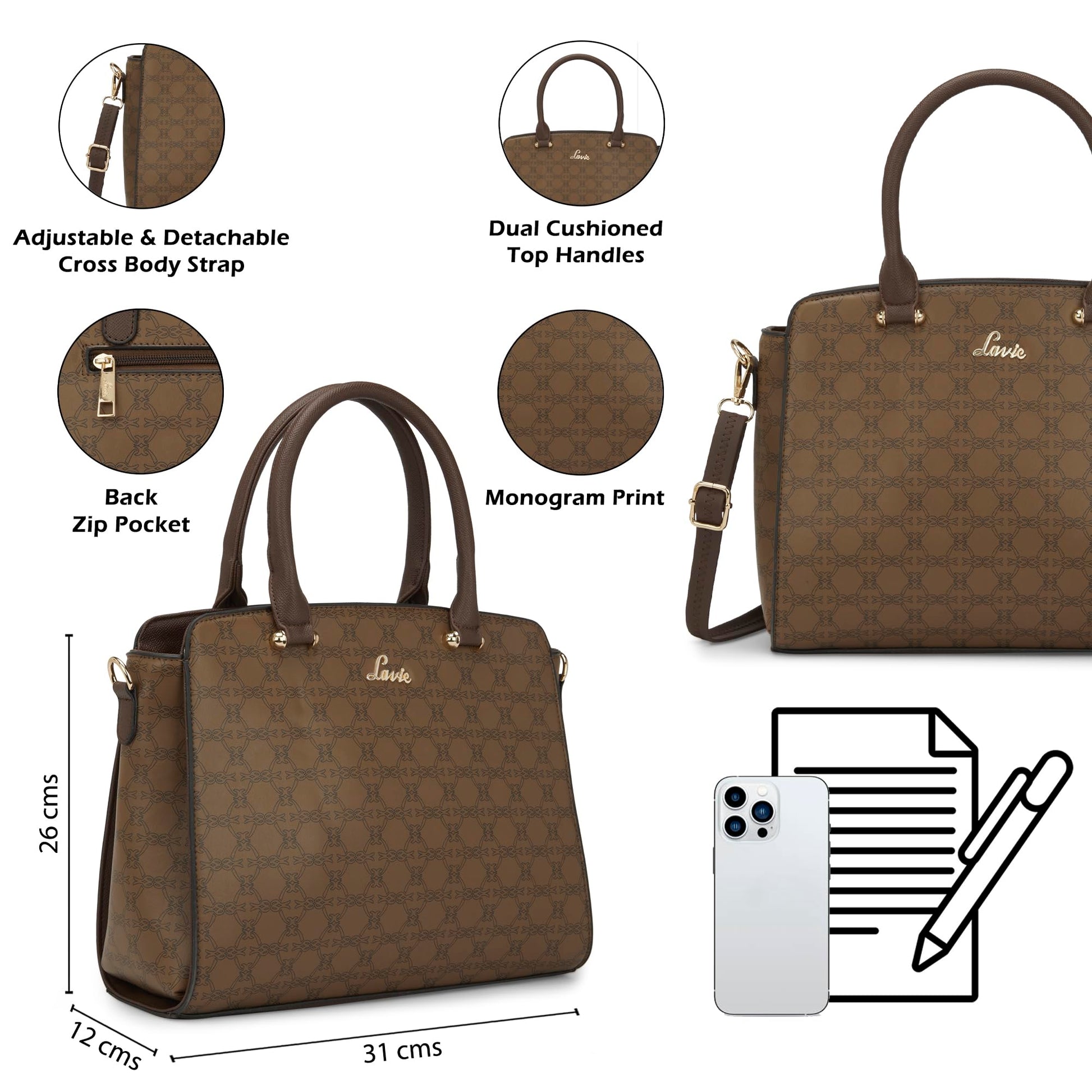 Lavie Women's Mono Ushawu Medium Satchel Handbag for Women | Satchel Bag for Work | Ladies purse | Stylish Shoulder Bag | Gift For Women
