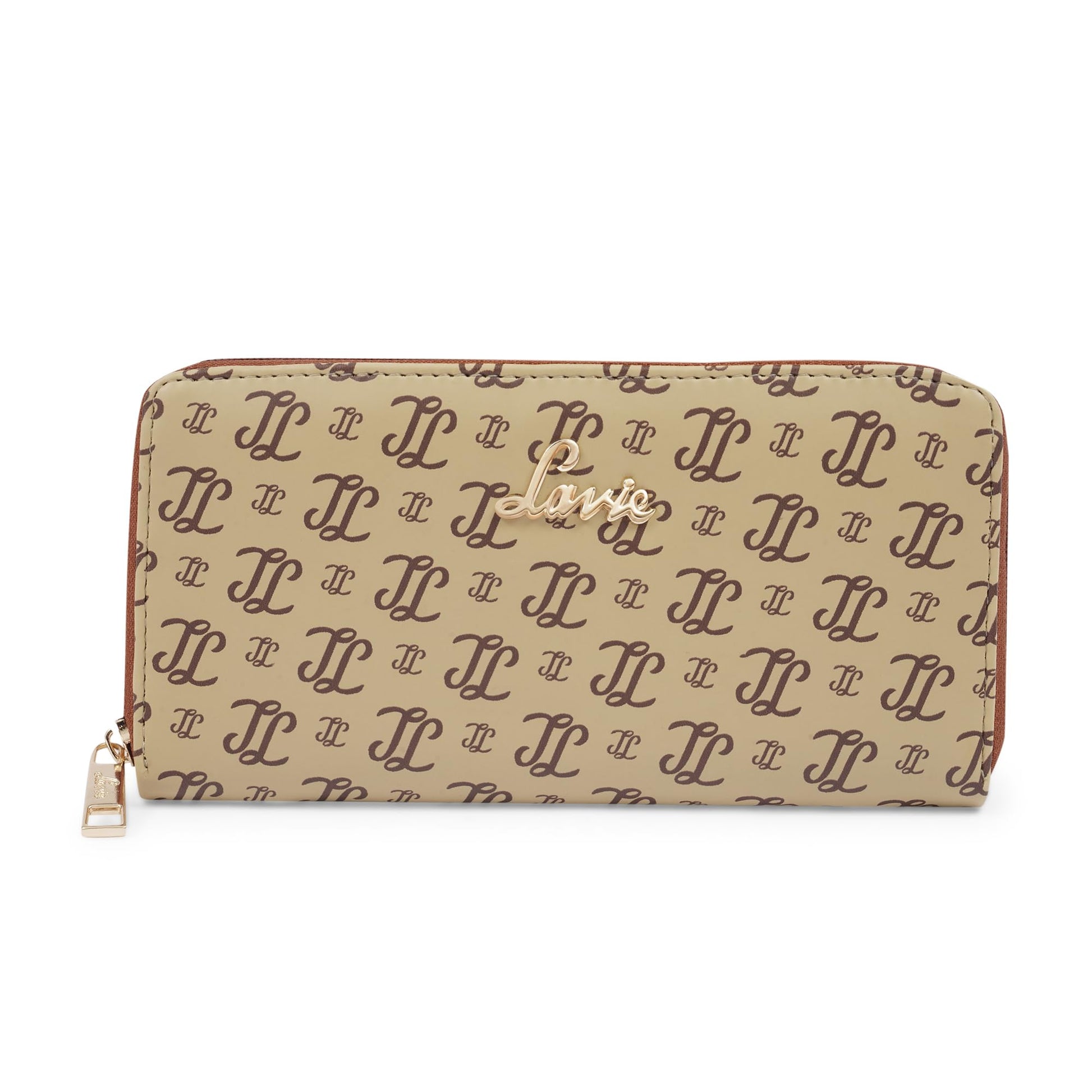 Indulge yourself with a fashion accessory unlike anything you've ever had before A zip around wallet by Lavie flaunts a luxurious finish, metallic label treatment and additional bifold oppening making it easy to separate cash and cards