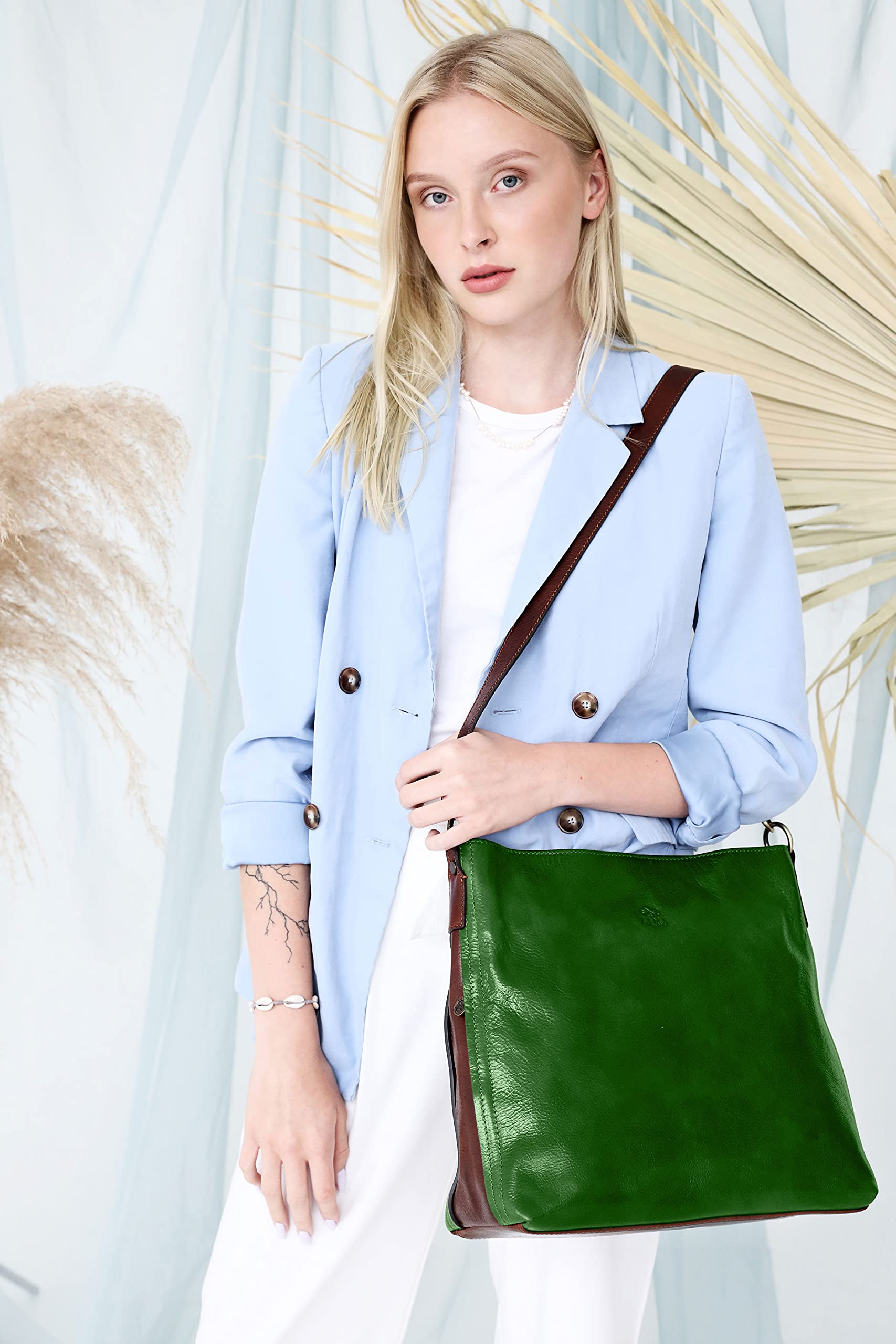 Leather Handbag - Shoulder Bag - Convertible Purse for Women - Time Resistance, Green, One Size