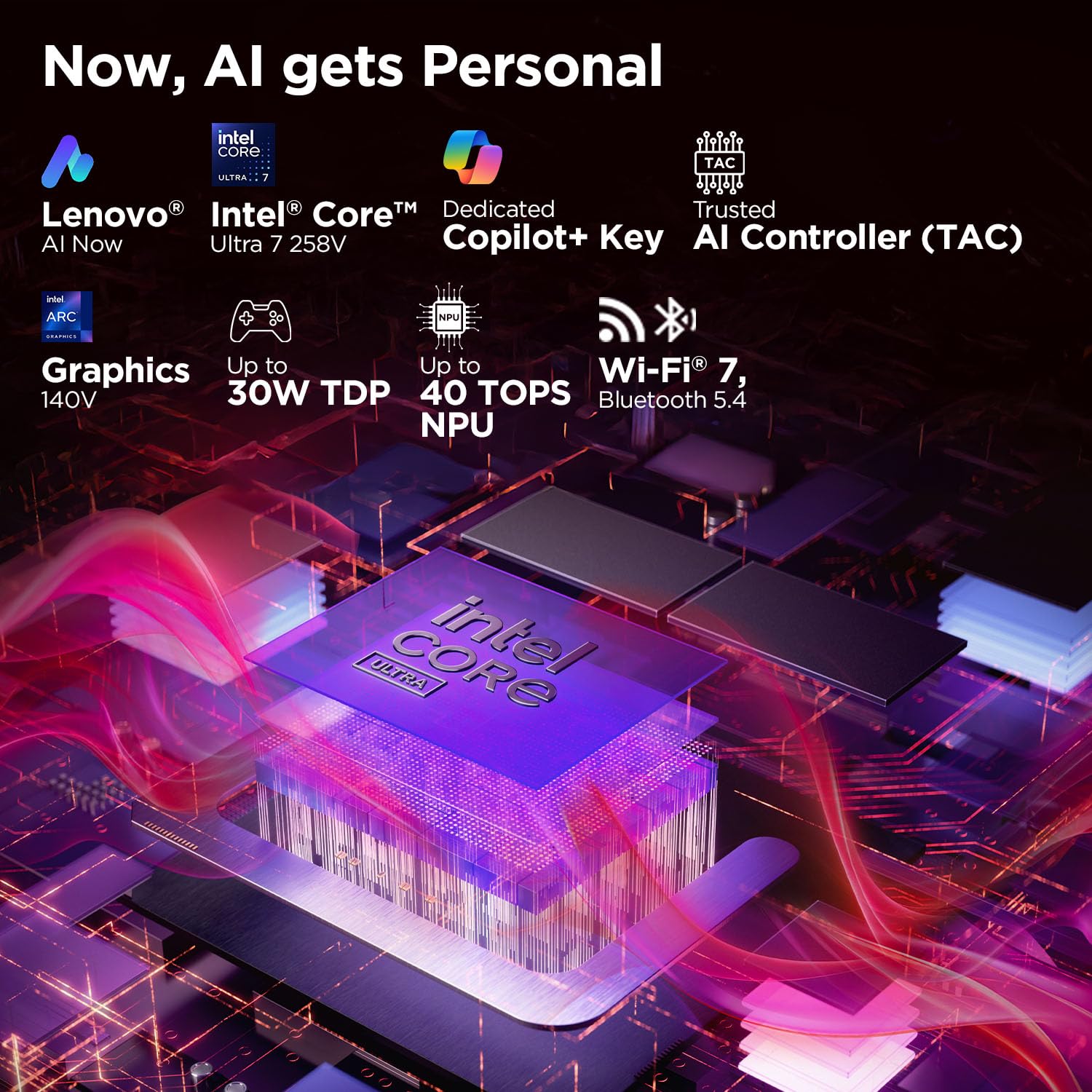 - Processor: Intel Evo Core Ultra 7 258V | 8C (4P + 4LPE) / 8T, Max Turbo upto 4.8GHz | 8 Cores | 8 Threads | Cache: 12MB || NPU: Integrated Intel AI Boost, up to 47 TOPS