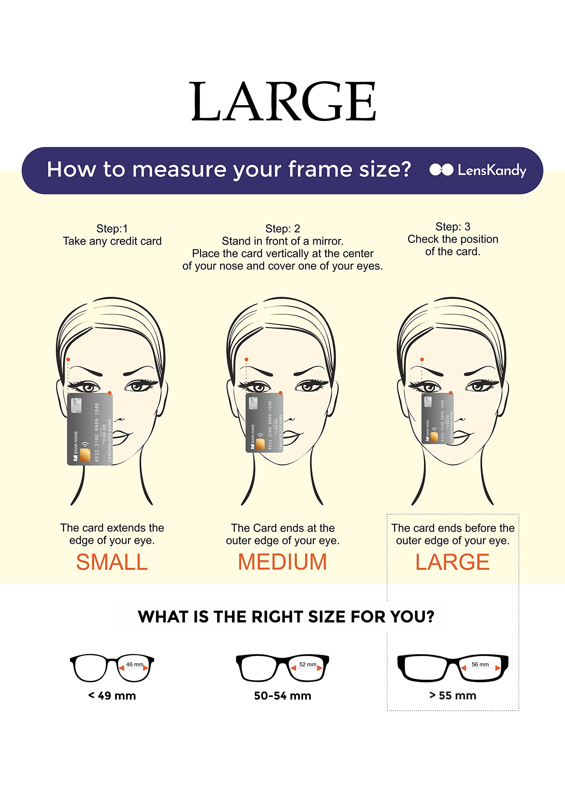 - Size : Large | Frame width : 142mm/14.2Cm | Frame Height : 51mm/5.1Cm | Frame Dimension : (65-15-139)mm.