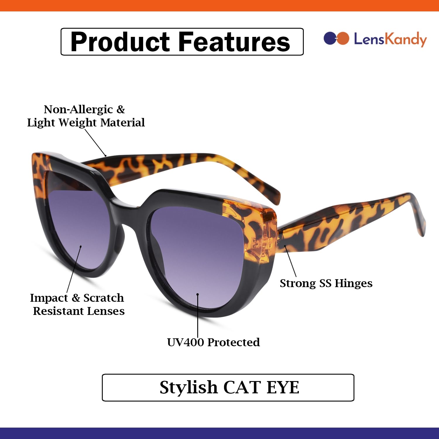 - Frame Pattern & Quality : The LensKandy designer sunglasses collection features the most stylish, trendy sunglasses for women. The cat eye shape is a classic shape in a world of luxury sunglasses. These Full rim shades for women are made from high strength materials which are light weight, impact resistant, strong. The material of goggles are thin which makes them very comfortable on wearing for long hours.