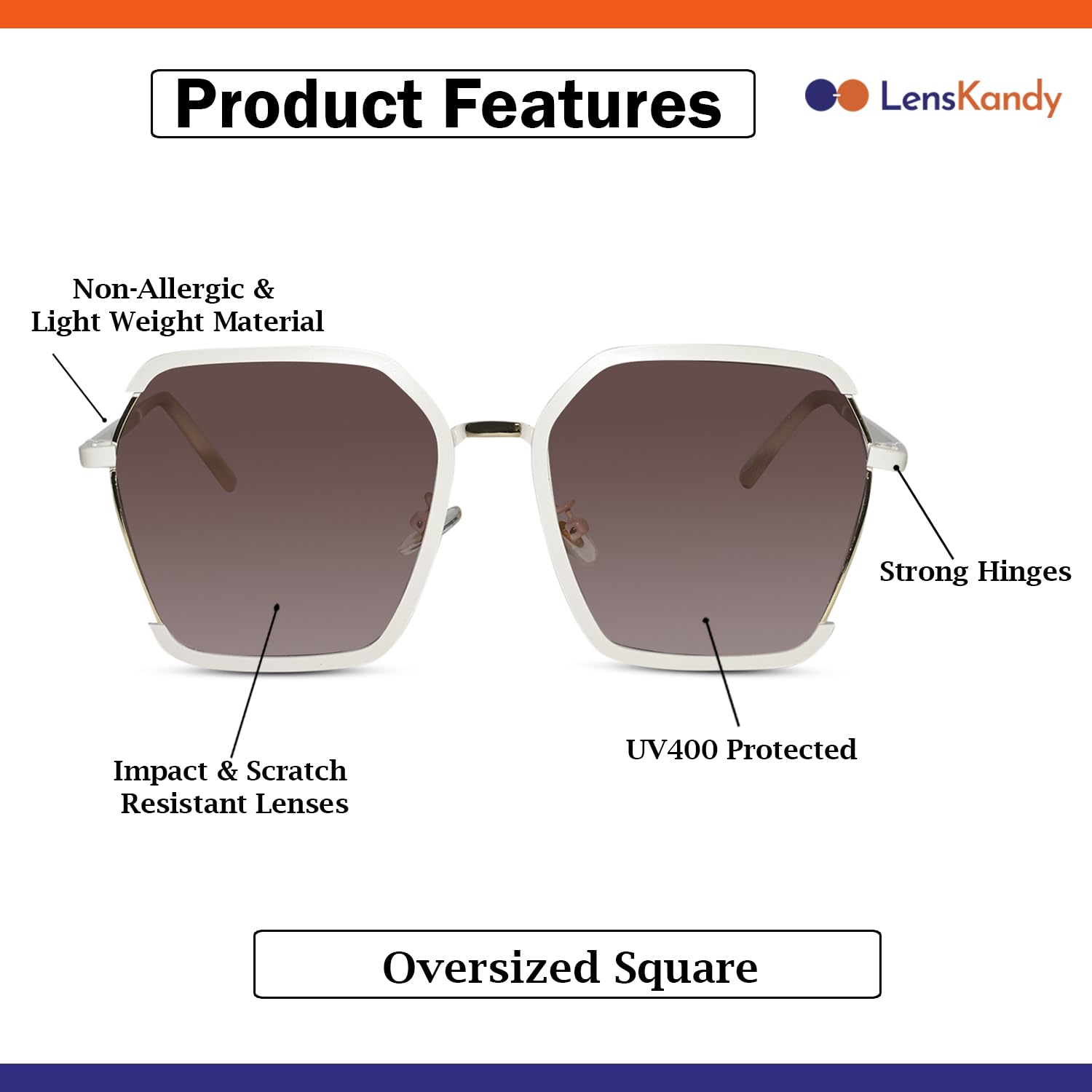 LensKandy Oversized Hexagoanl 100% UV Protected Sunglasses for Women | 2133-White
