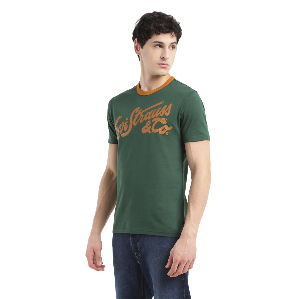 Switch up your everyday wardrobe with this trending t-shirt from Levi's. Ideal to wear for all seasons, this versatile t-shirt features a crew neck and short sleeves. Style it with a pair of straight-fit denims and white shoes to complete your outfit. 1. Made from premium quality pure cotton 2. A regular fit in the shade green 3. Comfortable essential with a brand logo pattern