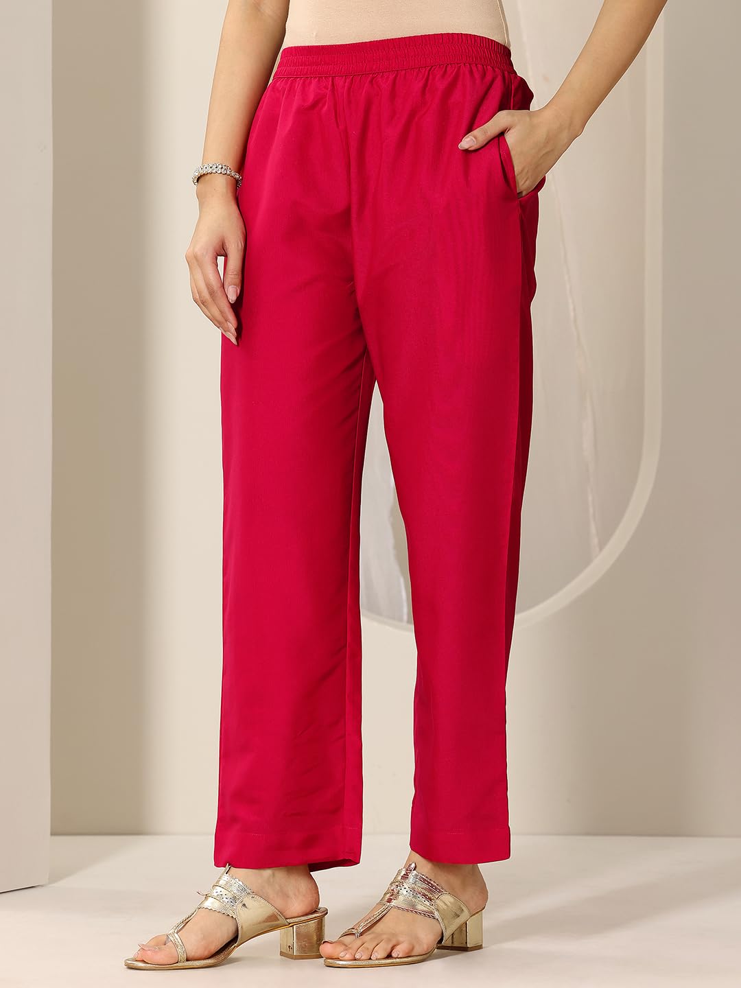Red floral printed anarkali kurta with embellishment & printed trouser with leheriya dupatta