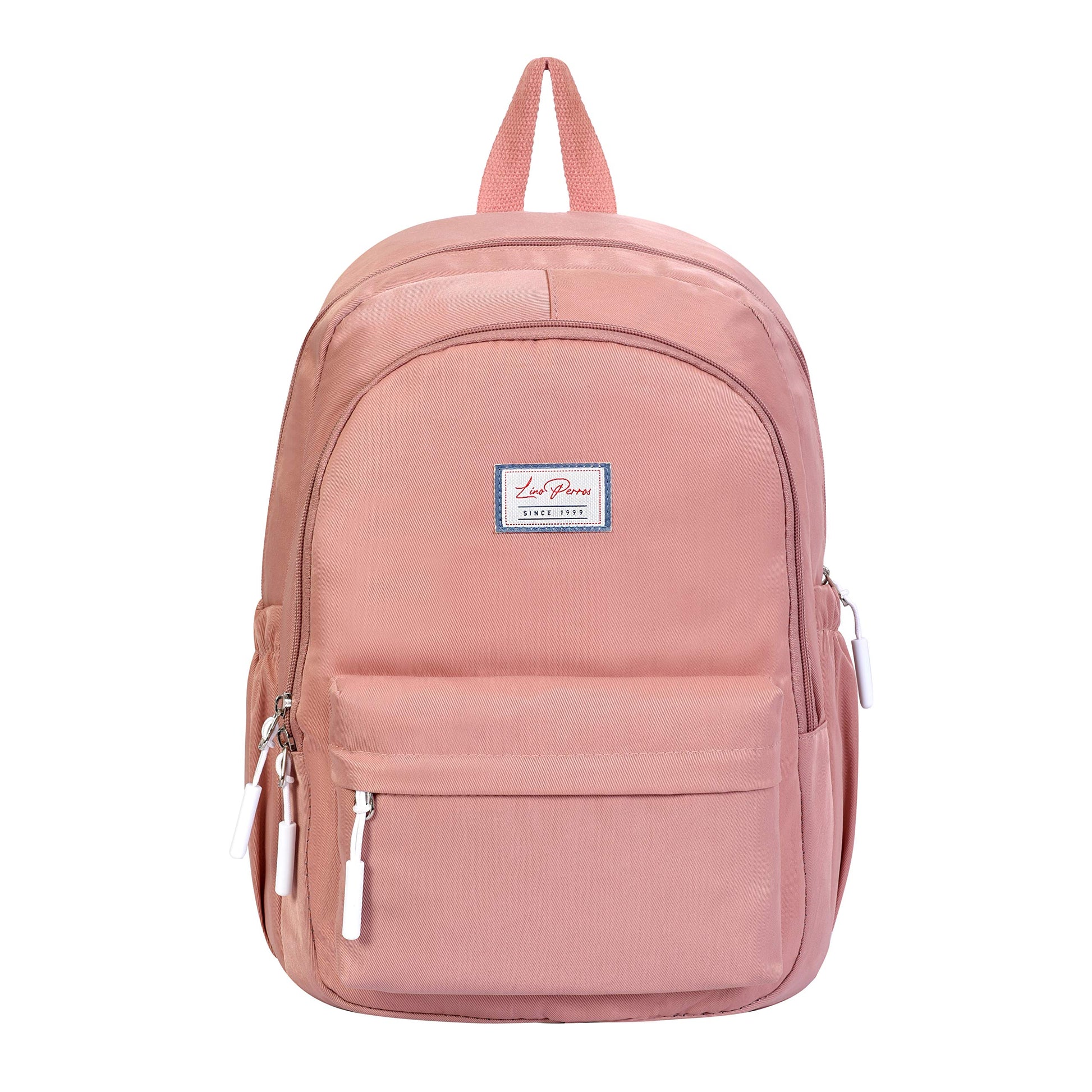 The stylish latest women backpack has a beautiful soft pastel Pink color, and features multiple compartments. The front zipped pockets are perfect for your small or medium size essentials like wallets, small purse, keychains etc. And the main zipped pocket offers mini laptop bag compartment and is spacious enough to hold your other daily essentials like tabs, ipads etc, hence, it can also be used as a travel Bag for long journeys. White puller detailing adds to its charm. The branding is weaved with signature Red and navy color alongside beautifully finished trims and durable synthetic fabric material which offers luxury. Additional side pockets can be utilised to carry your water bottles. This shoulder carrying classy backpack is a perfect companion for your outdoor casual/picnic look or a refined college/school look. Additionally, it has a theft protecting back zipper pocket in which you can carry all your essential belongings. The branded Lino Perros handbag collection are a must have for all the girls and ladies.
