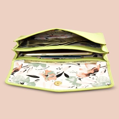 - 🌸 Floral Lined Multi-Compartment Interior Smartly designed with multiple card slots, compartments, and a zipped pocket, all wrapped in an elegant printed floral lining. Spacious enough to hold your phone, cash, cards, and more — making it a true organizer clutch.