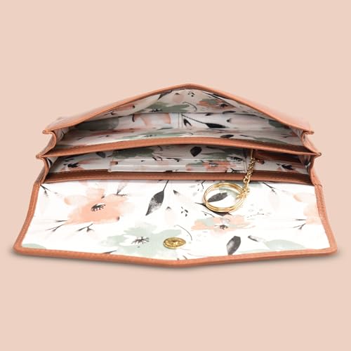 - 🌸 Floral Lined Multi-Compartment Interior Smartly designed with multiple card slots, compartments, and a zipped pocket, all wrapped in an elegant printed floral lining. Spacious enough to hold your phone, cash, cards, and more — making it a true organizer clutch.