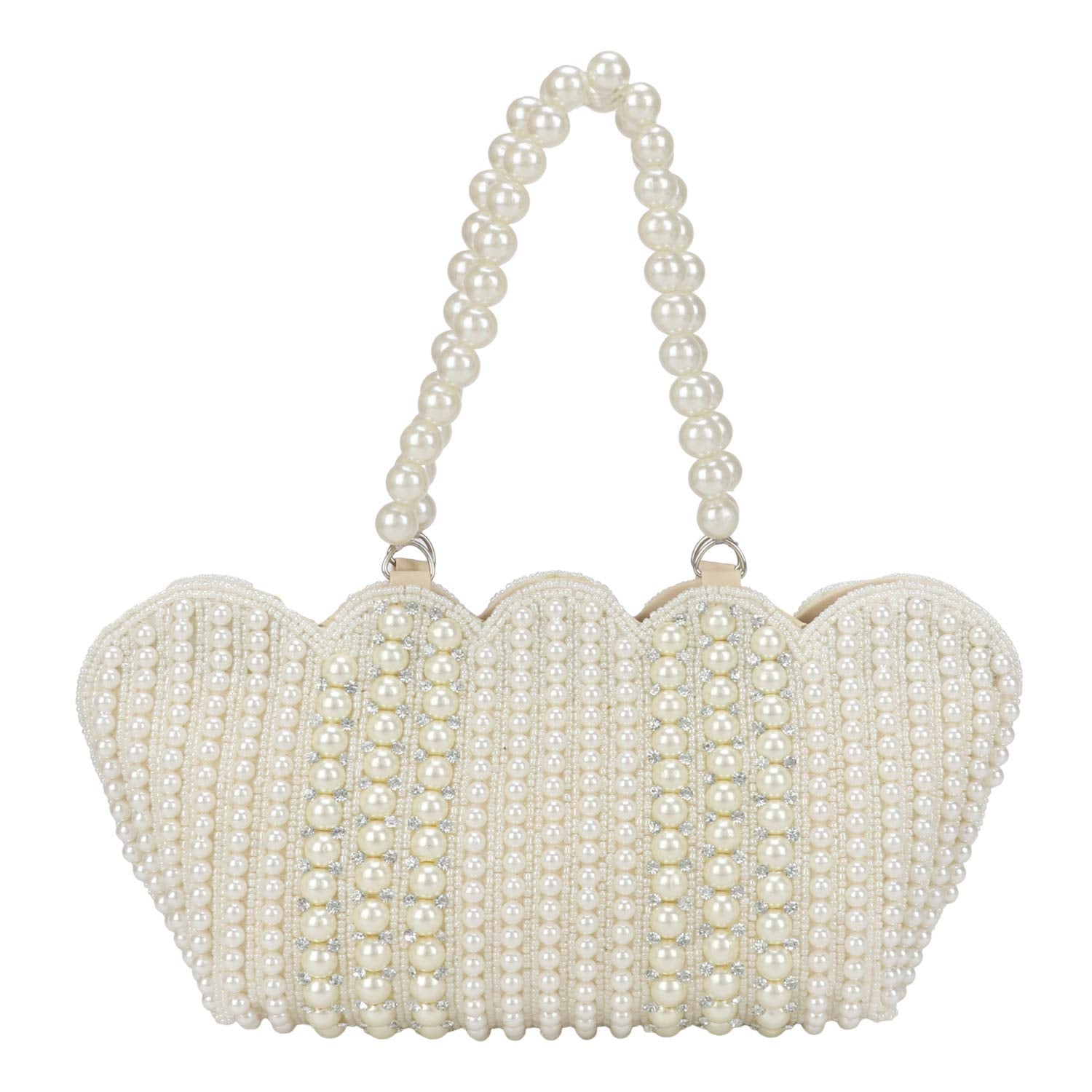 - Made of white Pearls all over the clutch