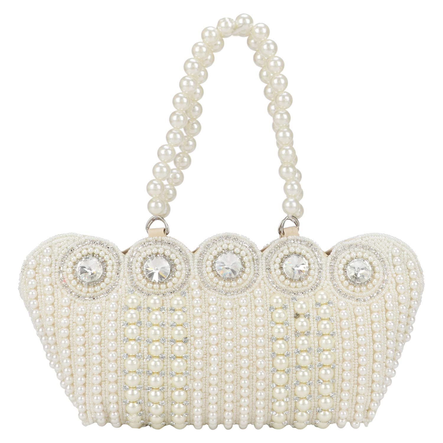 LONGING TO BUY Women's Small Cutest Vintage Style Pearl Tote Wrist Bag Evening Clutch Purse, White