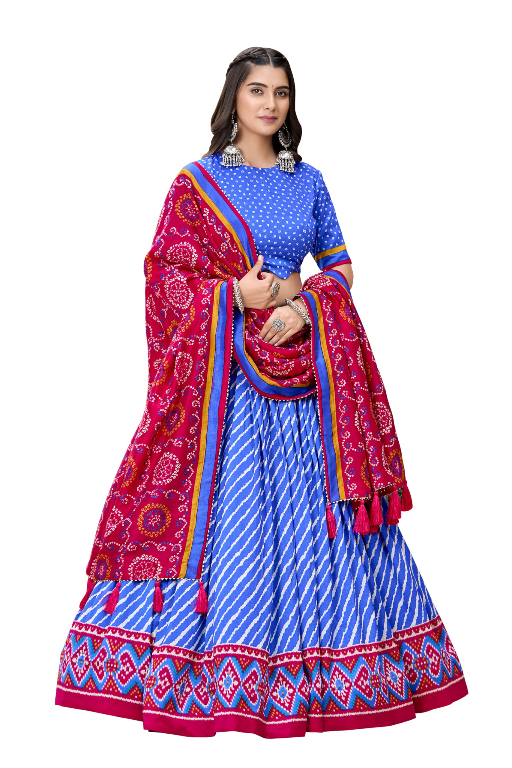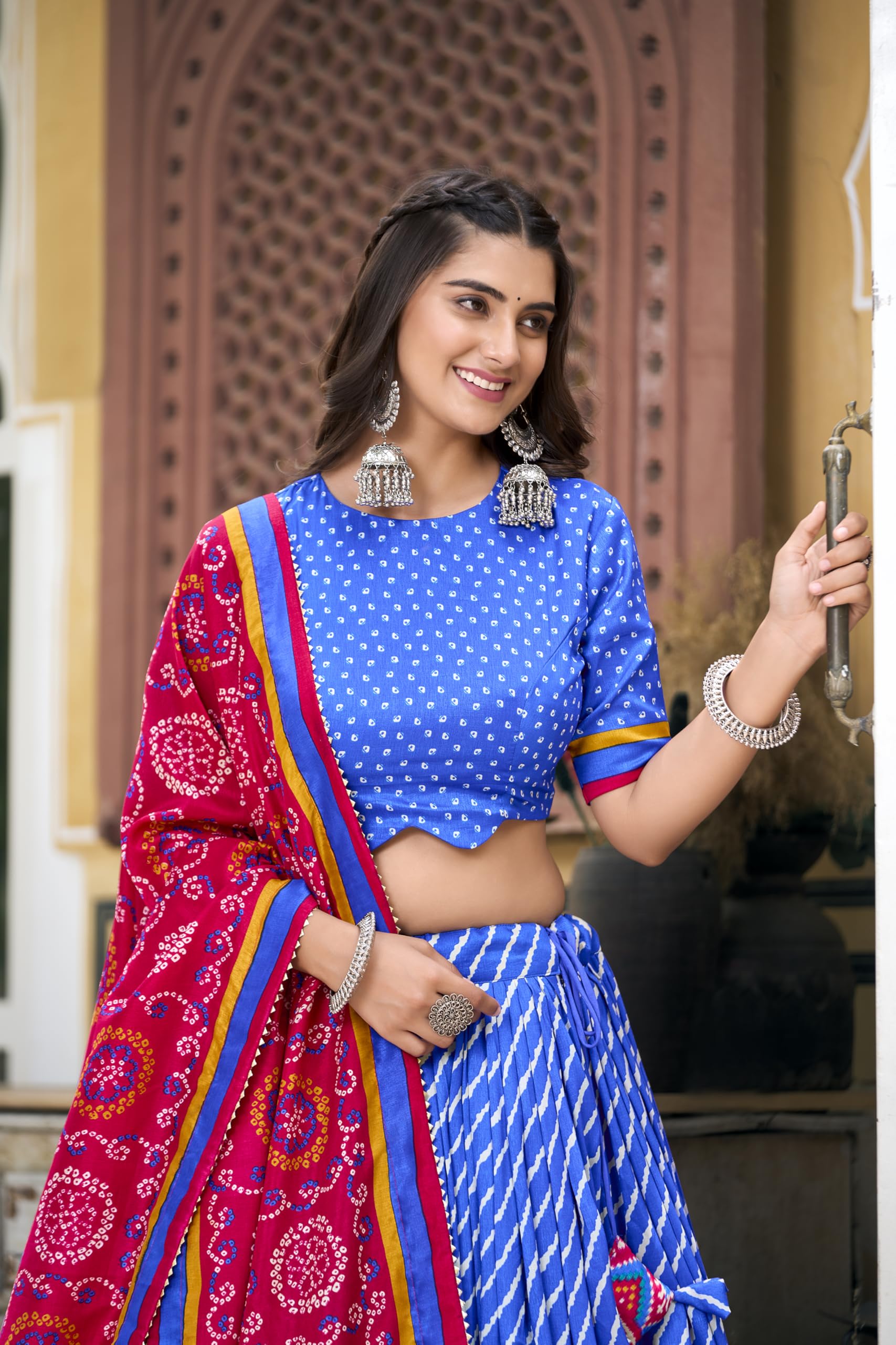 LooknBook Art Women's Leheriya Printed Silk Unstitched Lehenga Choli With Dupatta, Royal Blue