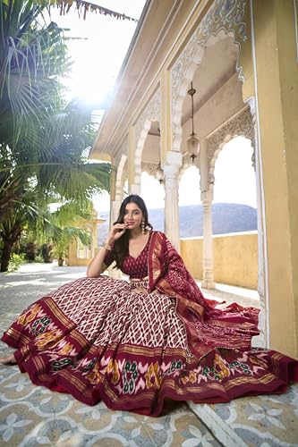 LooknBook Art Women's Wedding Special Tussar Silk With Ikkat Printed Lehenga Choli (Maroon)