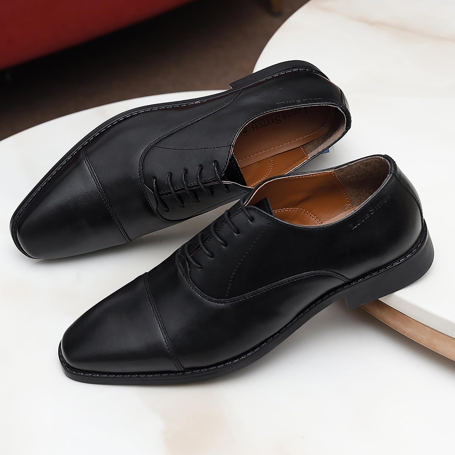 LOUIS STITCH Men's Jet Black Italian Leather Formal Derby Shoes Comfortable Handcrafted Formal Lace Ups for Men (RXCT) (Size- UK 7)