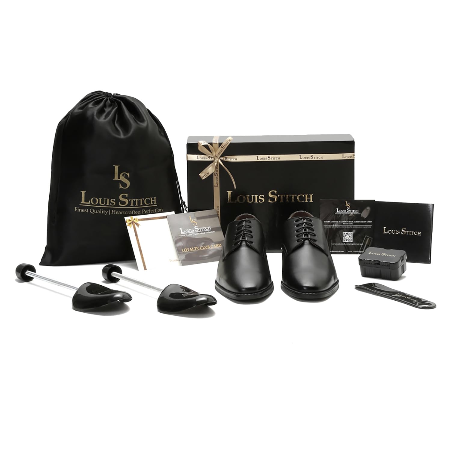 - FREEBIES: Shoe Tree, Shoe Horn, Linseed Gel Sponge, Travel Shoe Bag to carry your pair in style. (Pls refer to packaging image). Please use these accessories to keep your shoes shining new for decades. Also Includes Warranty Card, Loyalty Card and Greeting Card.
