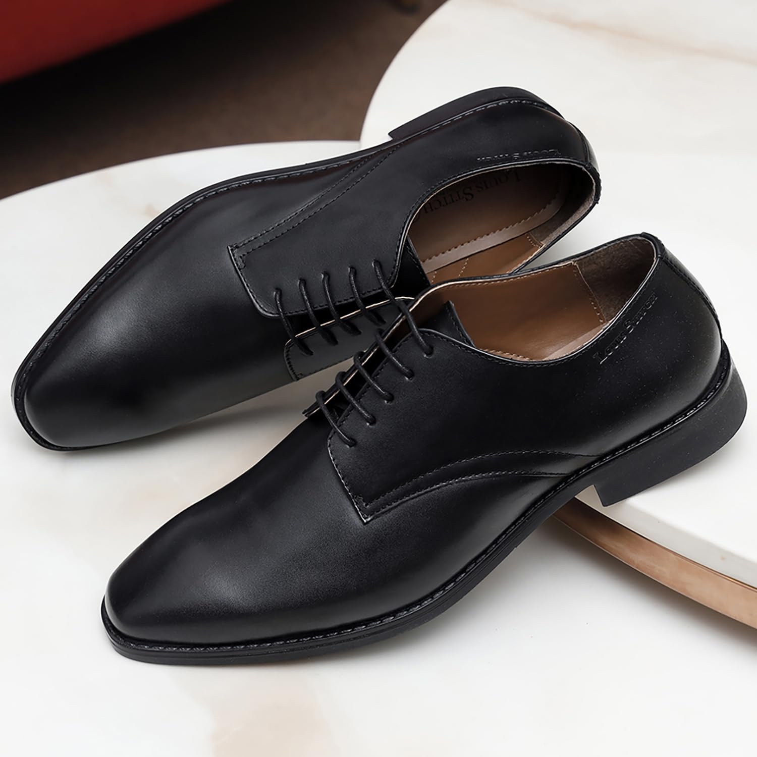 Details: These Italian Leather Derby are beautifully hand crafted with all love and affection by 3rd generation artisans. Perfectly finished with finest creams from the world, gently polished by softest cloth, and packed like delicate muffins in the box. These are effortlessly stylish yet durable and strong. Adored and respected by stylish men across the world and are synonymous with luxury and elegance. Every shoe is hand crafted only from virgin Italian genuine leather which is known for its durability, elegance, shine and can be easily recognized by onlookers as a Louis Stitch product. Every leather shoes is dual polished and Nano wax coated to have them shine same and last long for decades to come. The elegance, texture and strength of virgin genuine leather further magnifies with ageing. The full grain leather, is the most durable leather. The sole is handmade and yet another masterpiece in the entire construction. The shoe comes with 1 months of International warranty. Should you seek any concern or queries please visit our website or contact customer delight, we would be very happy to speak to you. Wish you a happy and convenient shopping.