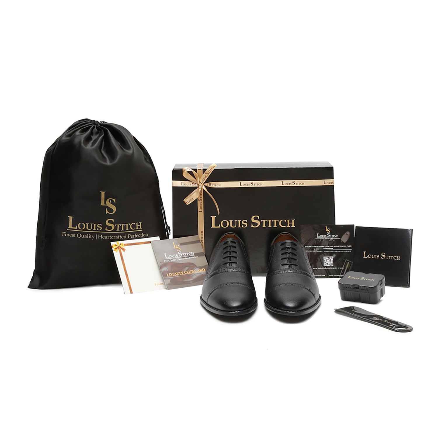 Details: LOUIS STITCH men's new-generation shoes for men are tough; durable and effortlessly stylish. These Oxfords are beautifully handcrafted with all love and affection by 3rd generation artisans. Perfectly finished with the finest creams from the world, gently polished by the softest cloth, and packed like delicate muffins in the box. These are effortlessly stylish yet durable and strong. Adored and respected by stylish men across the world and are synonymous with luxury and elegance. Every shoe is hand-crafted only from virgin genuine Leatherette which is known for its durability, elegance, and shine and can be easily recognized by onlookers as a LOUIS STITCH product.