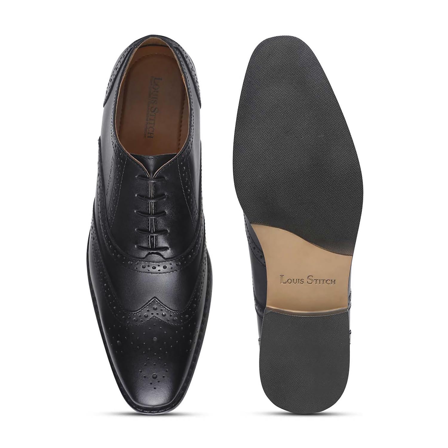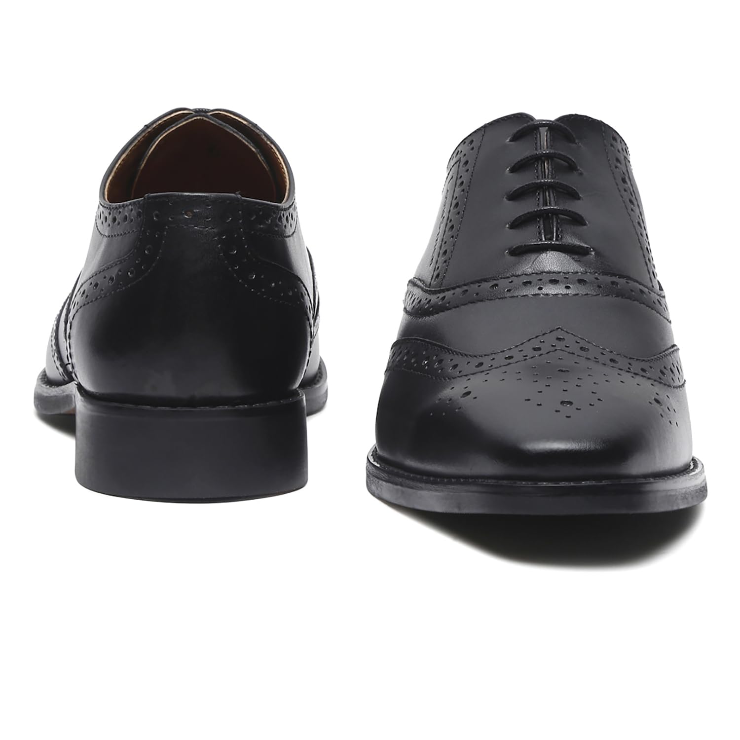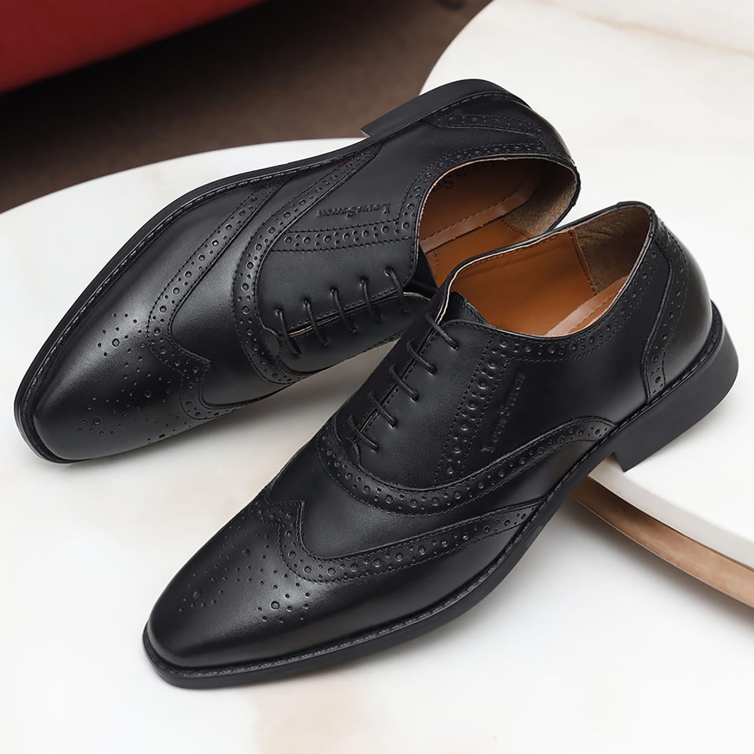 LOUIS STITCH Mens Obsidian Black Italian Leather Wingtip Brogue Handmade Formal Lace Up Shoe for Men (RXBG) - 8 UK