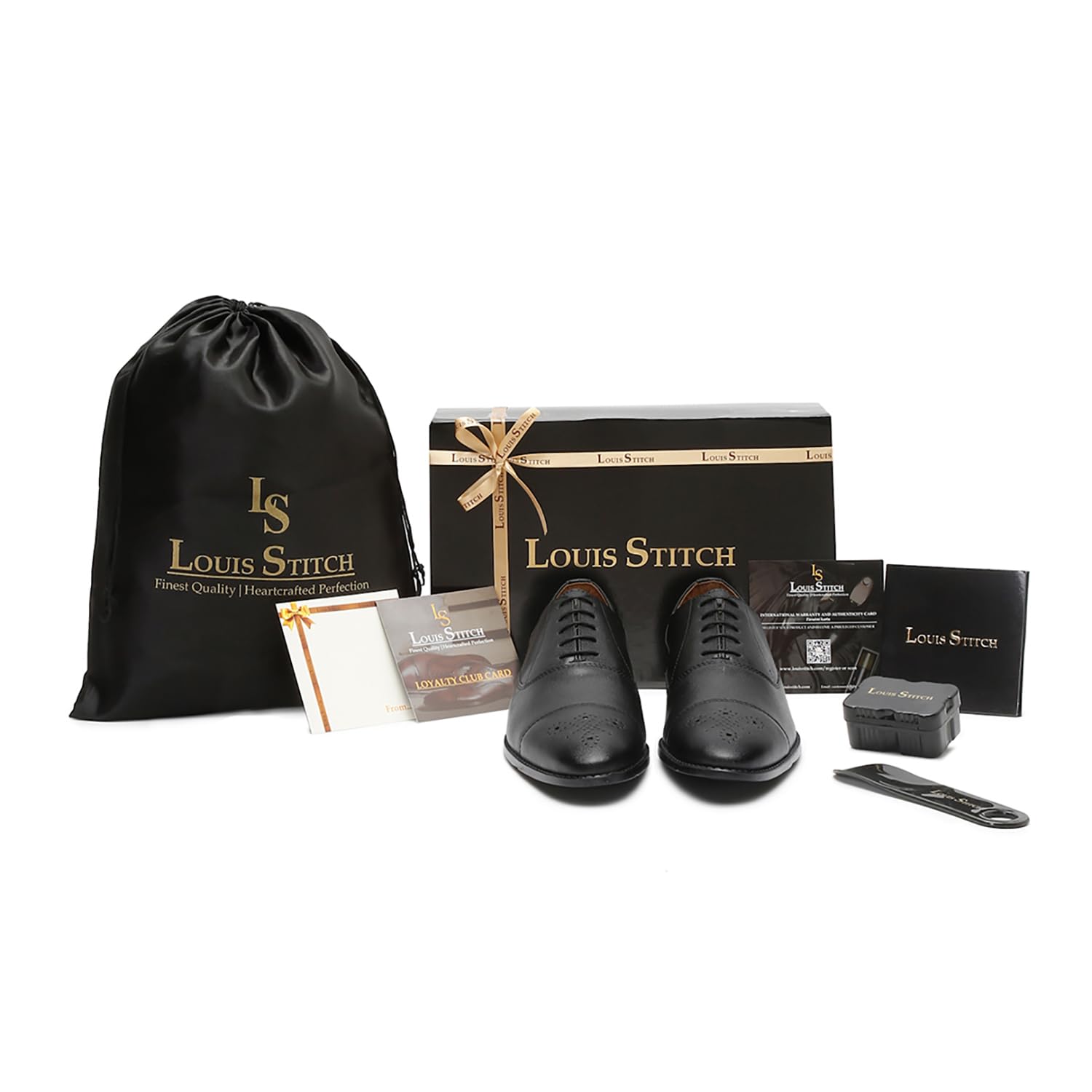 LOUIS STITCH Men's Obsidian Black Shoes Captoe Style Comfortable Laceups for Men (RGCTJB) (Size-8UK)