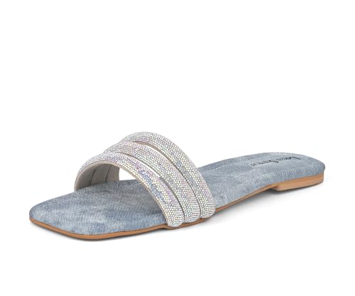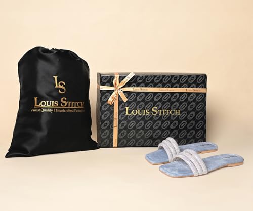 LOUIS STITCH Women’s Fashion Flat Slip-On Sandals | Open Toe Blue Shiny Strap Flat Slipper for Ladies | UK-6