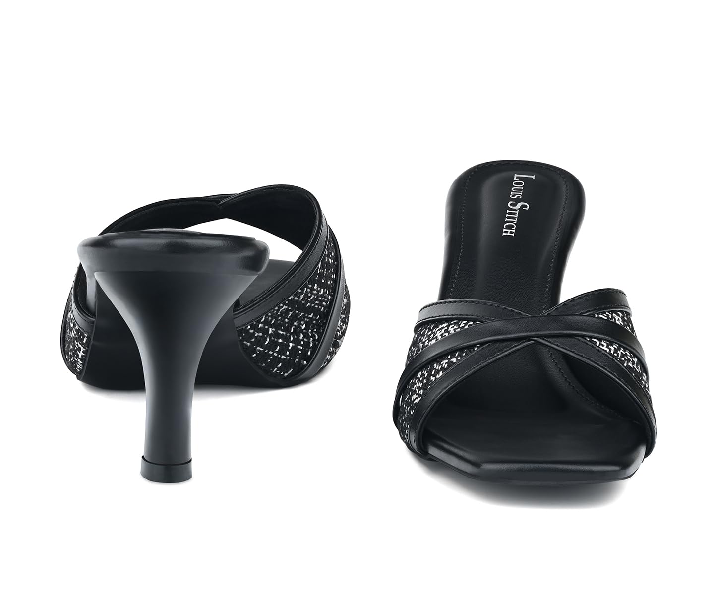 LOUIS STITCH Women’s Fashion Slip-On Pointed Heel Sandals | Open Toe Black Stiletto Heel Sandal for Ladies, Stylish and Comfortable Sandal | LSOF-LDPH-TSMUJB | UK-6
